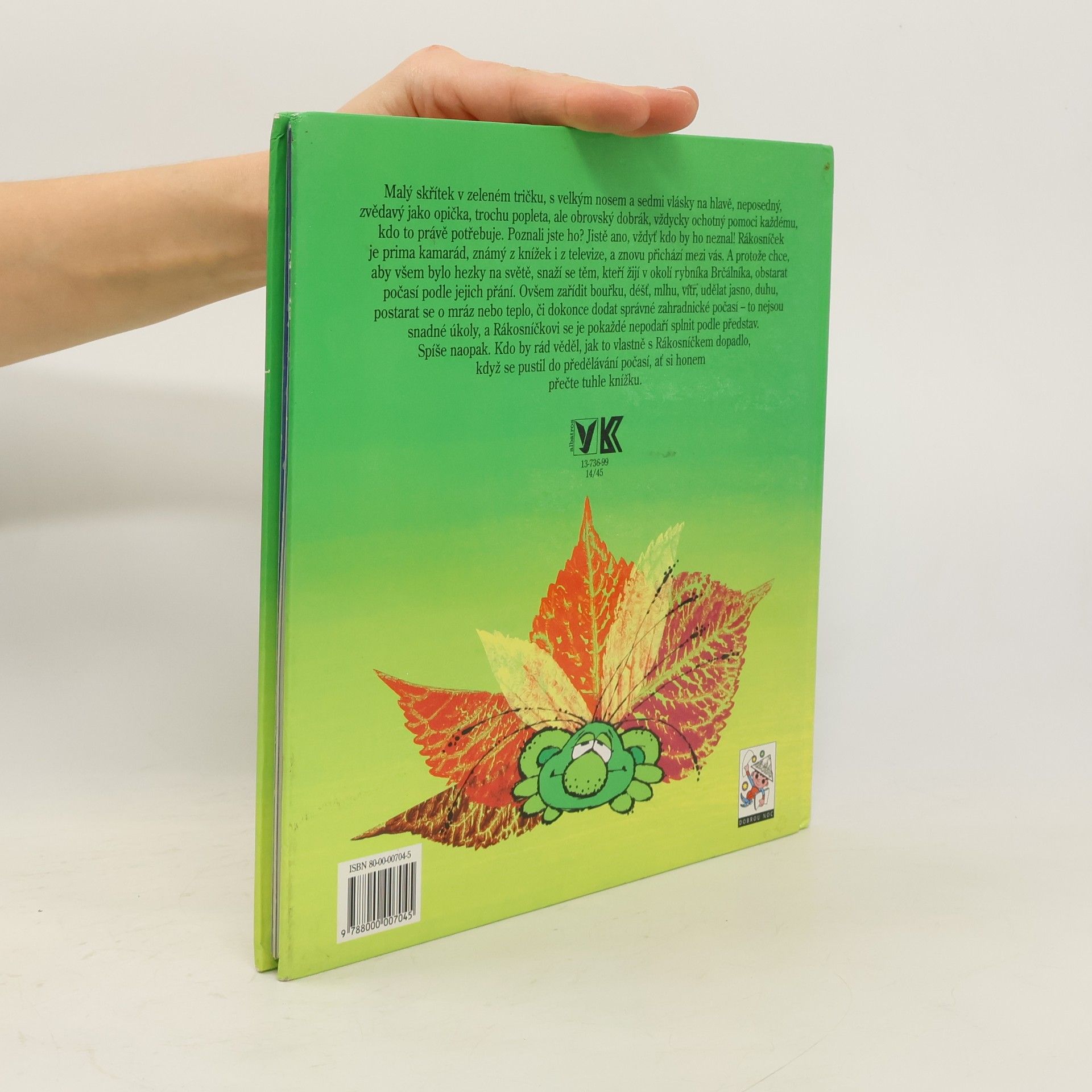 Kdo by neznal Rákosníčka, ať už z knížek, nebo z televizních večerníčků! Malého skřítka v zeleném tričku, s velkým nosem a sedmi vlásky na hlavě, zvědavého jako opička, trochu popletu, ale jinak obrovského dobráka. A protože skřítek rád pomáhá a chce, aby bylo hezky na světě, snaží se všem z okolí rybníka Brčálníka obstarat počasí podle jejich přání. Rákosníček by rád všem pomohl, ovšem zařídit bouřku, déšť, mlhu, vítr, udělat jasno, duhu, postarat se o mráz nebo teplo, či dokonce dodat správné zahradnické počasí - to nejsou ledajaké a snadné úkoly. Rákosníčkovi se je také pokaždé nepodaří stoprocentně splnit podle představ, spíše naopak. Jak to nakonec dopadne, když se Rákosníček pustí do předělávání počasí, se dozví každý, kdo si přečte tuhle knížku.