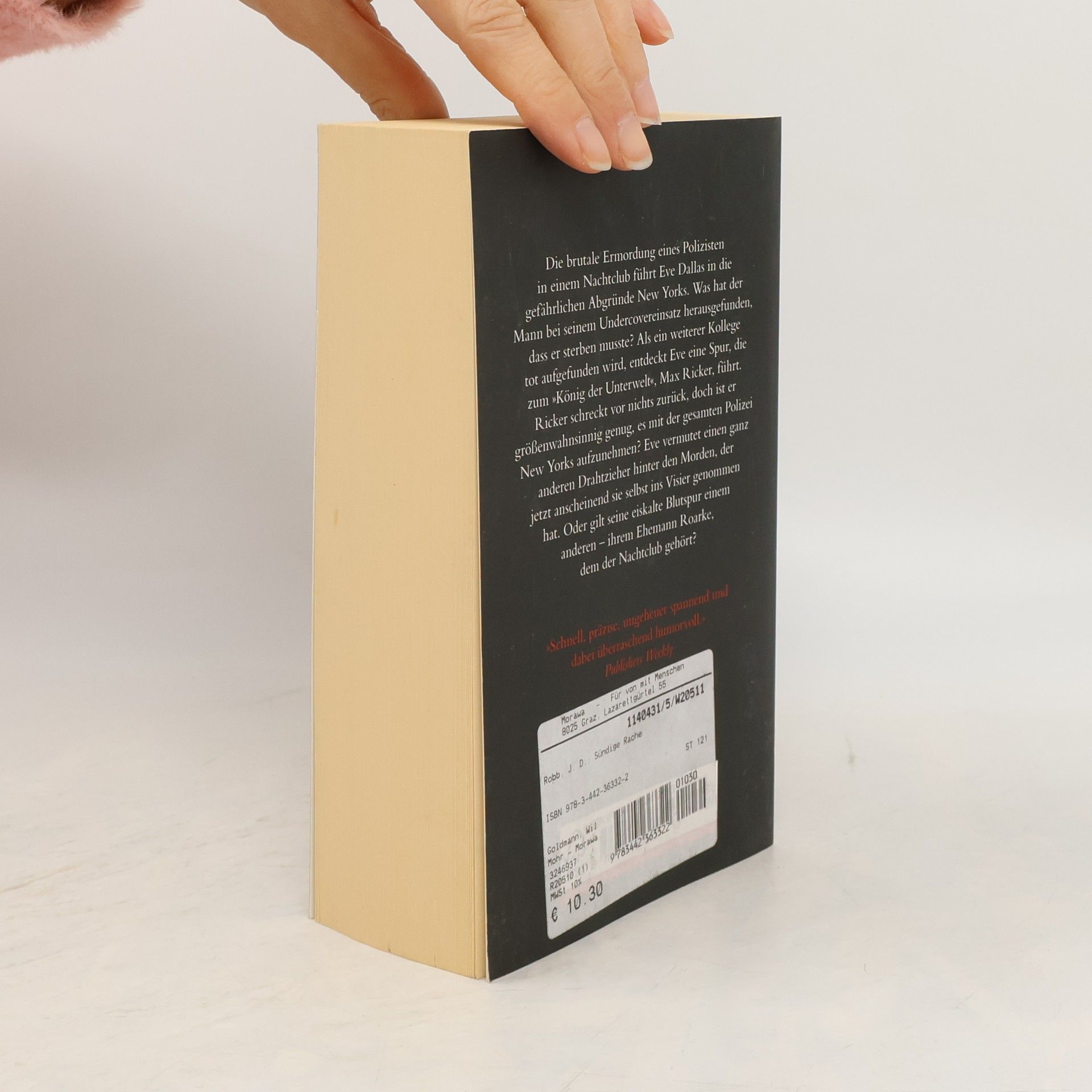 Nora Roberts schreibt als J. D. Robb! Die brutale Ermordung eines Polizisten in einem Nachtclub führt Eve Dallas in die gefährlichen Abgründe New Yorks. Was hat der Mann bei seinem Undercover-Einsatz herausgefunden, dass er sterben musste? Als ein weiterer Kollege tot aufgefunden wird, entdeckt Eve eine Spur, die zu dem König der Unterwelt, Max Ricker, führt. Ricker schreckt vor nichts zurück, doch ist er größenwahnsinnig genug, es mit der gesamten Polizei New Yorks aufzunehmen? Eve vermutet einen ganz anderen Drahtzieher hinter den Morden, der jetzt anscheinend sie selbst ins Visier genommen hat. Oder gilt seine eiskalte Blutspur einem anderen – ihrem Ehemann Roarke, dem der Nachtclub gehört?