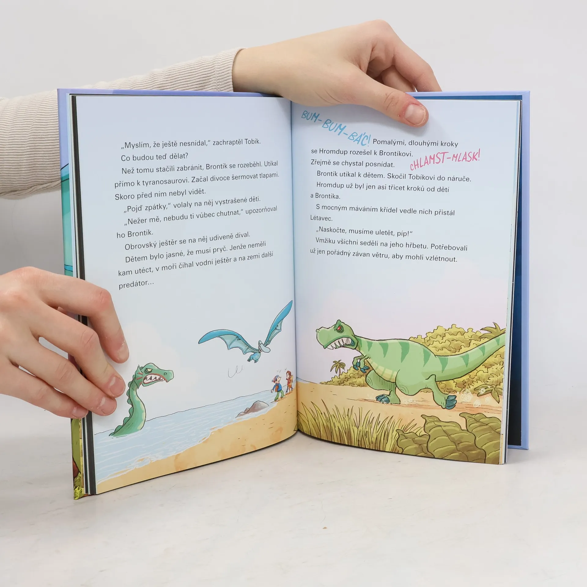 Takové domácí mazlíčky jen tak někdo nemá! 2.díl veselých příběhů pro děti. Týna s Tobíkem ukrývají ve strýčkově domě dinosaury – malého Brontíka a ptakoještěra Létavce. Bohužel o nich ví i profesor Karoch a reportér Louda. Chtějí dinosaury chytit, zkoumat a proslavit se tím. Při jedné honičce Létavec spolu s ostatními kamarády proletí časem až do pravěku. Ani tam ale nejsou v bezpečí: ve vodě na ně zaútočí ještěr a na souši zas obrovský tyranosaurus. Podaří se jim vyváznout se zdravou kůží?
