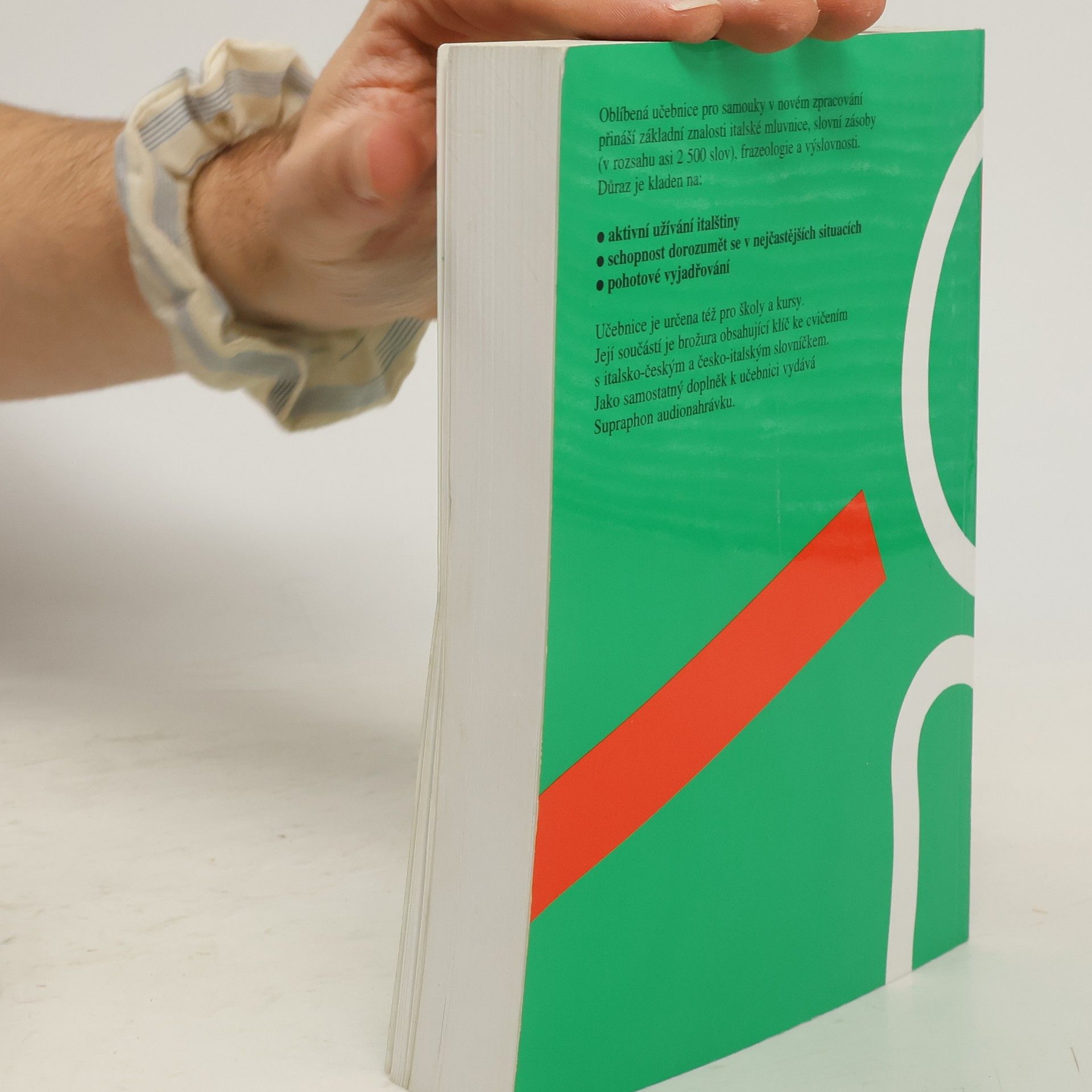 Oblíbená učebnice pro samouky v novém zpracování přináší základní znalosti italské mluvnice, slovní zásoby (v rozsahu asi 2500 slov ), frazeologie a výslovnosti. Důraz je kladen na: aktivní užívání italštiny schopnost dorozumět se v nejčastějších situacích pohotové vyjádřováníUčebnice je určena též pro školy a kursy. Její součásti je brožura obsahující klíč ke cvičením s italsko-českým a česko-italským slovníčkem. Jako samostatný doplněk vydává Supraphon audionahrávku.