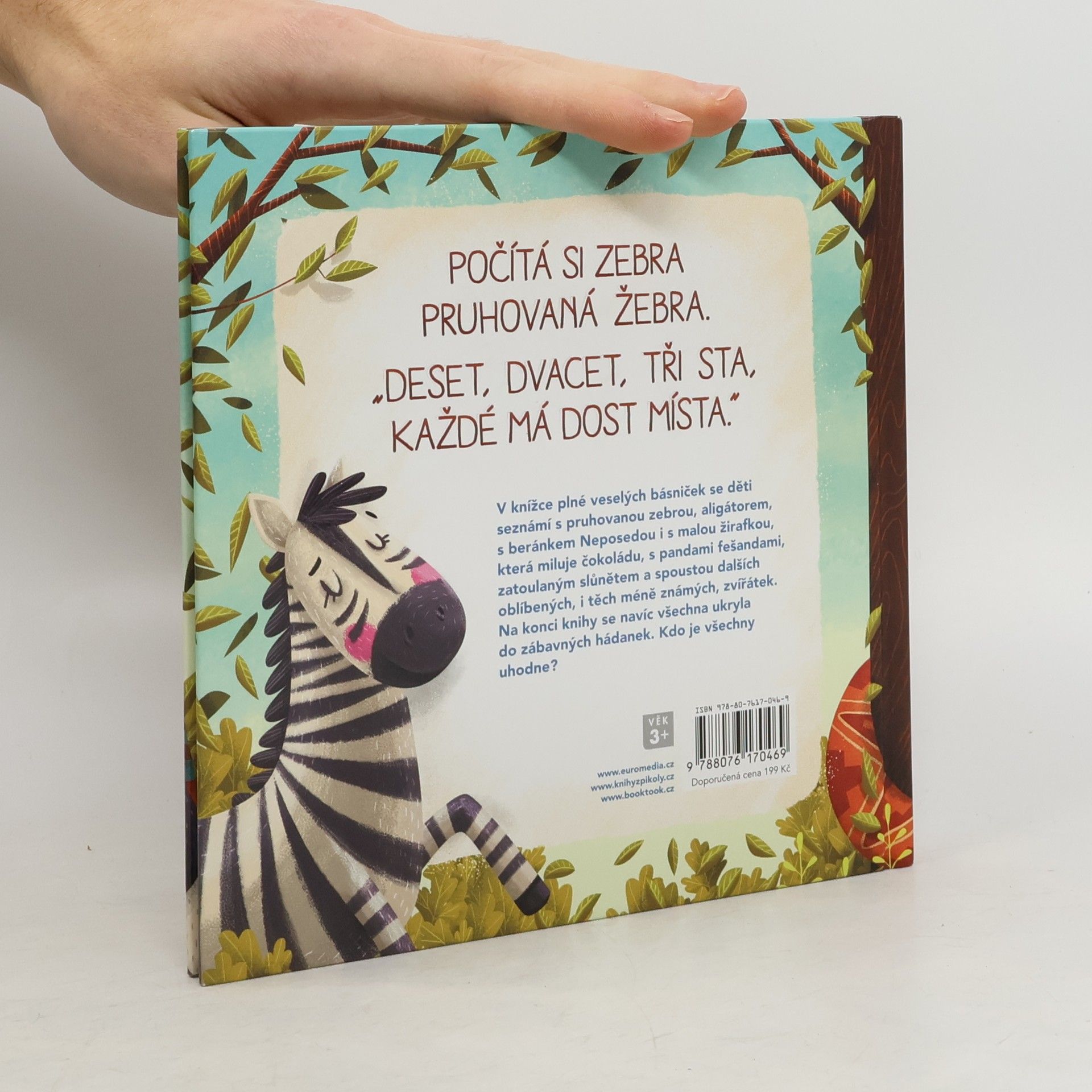 Dvacet sedm zvířátek a dvacet sedm rozpustilých básniček doprovázených krásnými barevnými ilustracemi udělá radost každému dítěti. Seznámí se s liškou, divočákem, datlem, pavoukem, netopýrem, ale i s exotickými zvířaty, jako je aligátor, gazela, chameleon nebo zebra. Na konci knížky se navíc všechna zvířátka ukryla do hádanek. Kdo je uhodne, je odborník na slovo vzatý!
