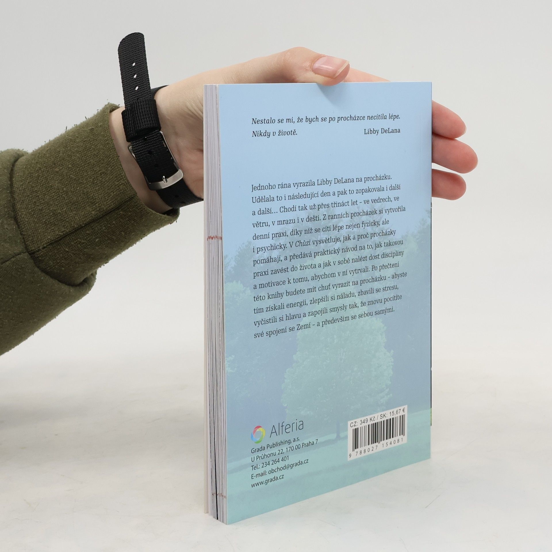 Jednoho rána vyrazila Libby DeLana na procházku. Udělala to i následující den a pak to zopakovala i další a další… bez přestávky to dělá už přes třináct let – ve vedrech, ve větru, v mrazu i v dešti. Z ranních procházek si udělala každodenní praxi, díky níž se cítí lépe nejen fyzicky, ale i psychicky. V Chůzi vysvětluje, jak a proč každodenní procházky pomáhají, a předává velmi praktický návod na to, jak takovou praxi zavést do života a jak v sobě nalézt dost disciplíny a motivace k tomu, abychom v ní vytrvali. Po přečtení této knihy budete mít bezpochyby chuť vyrazit na procházku – abyste tím získali energii, zlepšili si náladu i schopnost koncentrace, zbavili se stresu, odblokovali svou kreativitu, uzemnili se, vyčistili si hlavu, přenastavili mysl a zapojili své smysly tak, že znovu pocítíte své spojení se Zemí – a především se sebou samými.