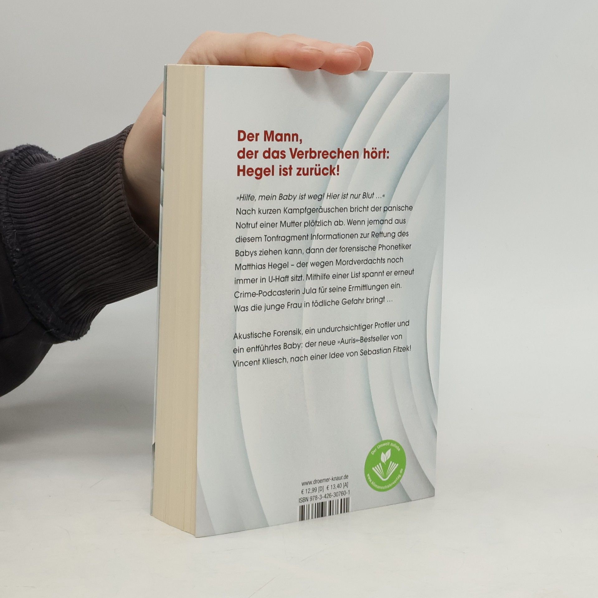 Akustische Forensik, ein undurchsichtiger Profiler und ein entführtes Baby:die rasante Fortsetzung des Nr.-1-Spiegel-Bestsellers »Auris« der Thriller-Autoren Vincent Kliesch und Sebastian Fitzek! »Hilfe, mein Baby ist weg! Hier ist nur Blut …« Nach kurzen Kampfgeräuschen bricht der panische Notruf einer Mutter bei der Nummer 112 plötzlich ab. Wenn jemand aus diesem Tonfragment Rückschlüsse auf den Aufenthaltsort der Frau ziehen kann, dann der forensische Phonetiker Matthias Hegel – den einige nach wie vor für einen Mörder halten.True-Crime-Podcasterin Jula Ansorge ist es zwar gelungen, Hegel vom Mordverdacht an seiner Frau zu entlasten, doch dabei ist sie der dunklen Seite des genialen Profilers deutlich zu nahe gekommen.Als Hegel nun im Fall des entführten Babys erneut auf ihre Recherche-Fähigkeiten zurückgreifen will, weigert Jula sich zunächst. Doch kann sie das Baby und seine Mutter wirklich ihrem Schicksal überlassen? Und was ist mit den Informationen zu ihrem tot geglaubten Bruder Moritz, die Hegel ihr angeblich beschaffen will? Auch im zweiten Teil der Thriller-Reihe ziehen die Bestseller-Autoren Vincent Kliesch und Sebastian Fitzek wieder alle Register: Nichts ist, wie es auf den ersten Blick scheint, und niemand bleibt so unschuldig, wie er es gern wäre. Rasante Spannung für die Fans außergewöhnlicher Thriller mit mehr als einer unerwarteten Wendung!