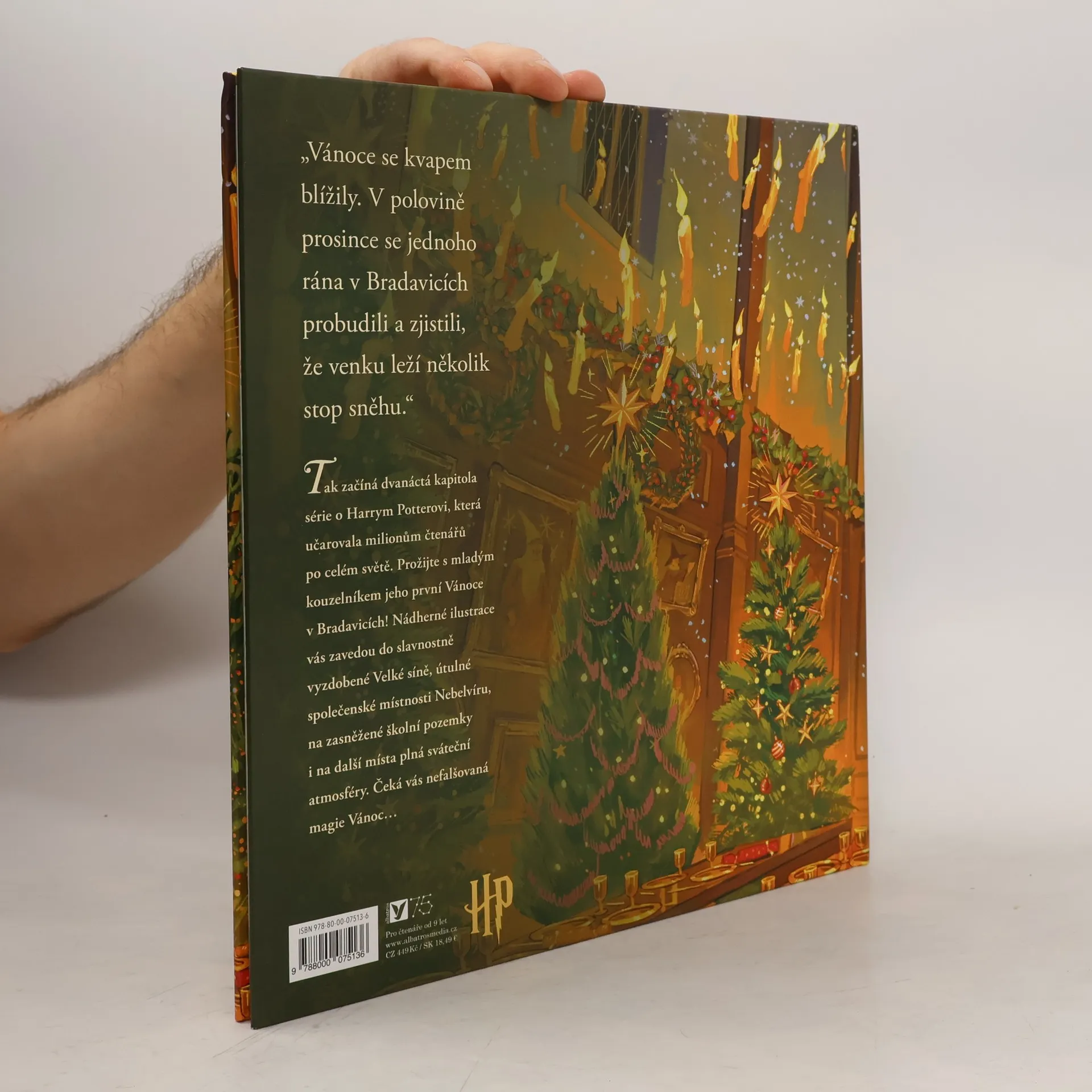 Vánoční příběh s celostránkovými ilustracemi pro malé i velké fanoušky Harryho Pottera. "Vánoce se kvapem blížily. V polovině prosince se jednoho rána v Bradavicích probudili a zjistili, že venku leží několik stop sněhu." Tak začíná dvanáctá kapitola série o Harrym Potterovi. Prožijte s mladým kouzelníkem jeho první Vánoce v Bradavicích. Nakladatelská anotace. Kráceno.