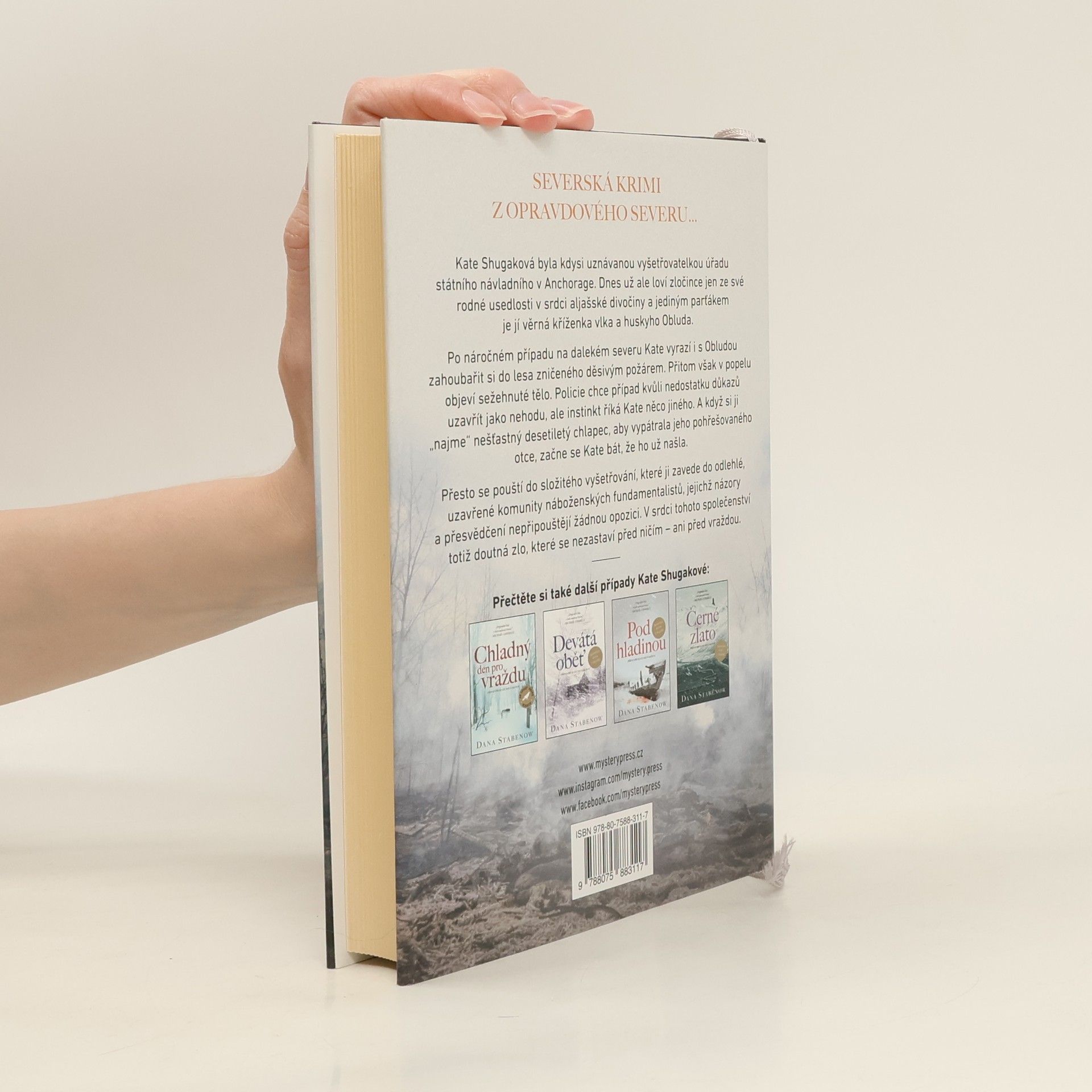 Kate Shugaková byla kdysi uznávanou vyšetřovatelkou úřadu státního návladního v Anchorage. Dnes už ale loví zločince jen ze své rodné usedlosti v srdci aljašské divočiny a jediným parťákem je jí věrná kříženka vlka a huskyho Obluda. Po náročném případu na dalekém severu Kate vyrazí i s Obludou zahoubařit si do lesa zničeného děsivým požárem. Přitom však v popelu objeví sežehnuté tělo. Policie chce případ kvůli nedostatku důkazů uzavřít jako nehodu, ale instinkt říká Kate něco jiného. A když si ji „najme“ nešťastný desetiletý chlapec, aby vypátrala jeho pohřešovaného otce, začne se Kate bát, že ho už našla. Přesto se pouští do složitého vyšetřování, které ji zavede do odlehlé, uzavřené komunity náboženských fundamentalistů, jejichž názory a přesvědčení nepřipouštějí žádnou opozici. V srdci tohoto společenství totiž doutná zlo, které se nezastaví před ničím – ani před vraždou.