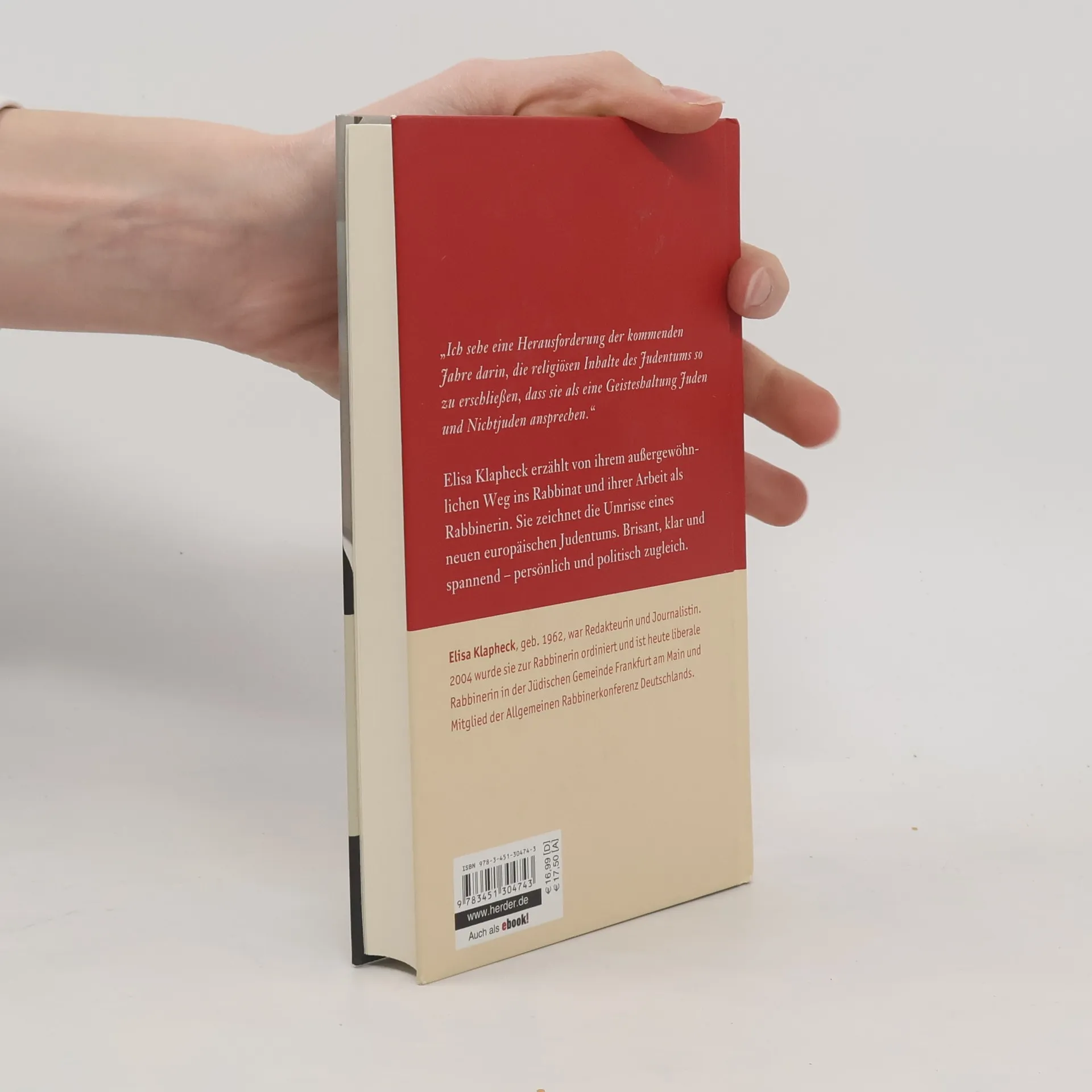 Elisa Klapheck, eine reformorientierte Rabbinerin in Deutschland, erzählt von ihrem Weg ins Rabbinat und porträtiert eine Generation junger Juden. Ihre überarbeitete Autobiografie aus 2005 enthält ein neues Kapitel über ihre Arbeit als Rabbinerin. Brisant, klar und spannend.