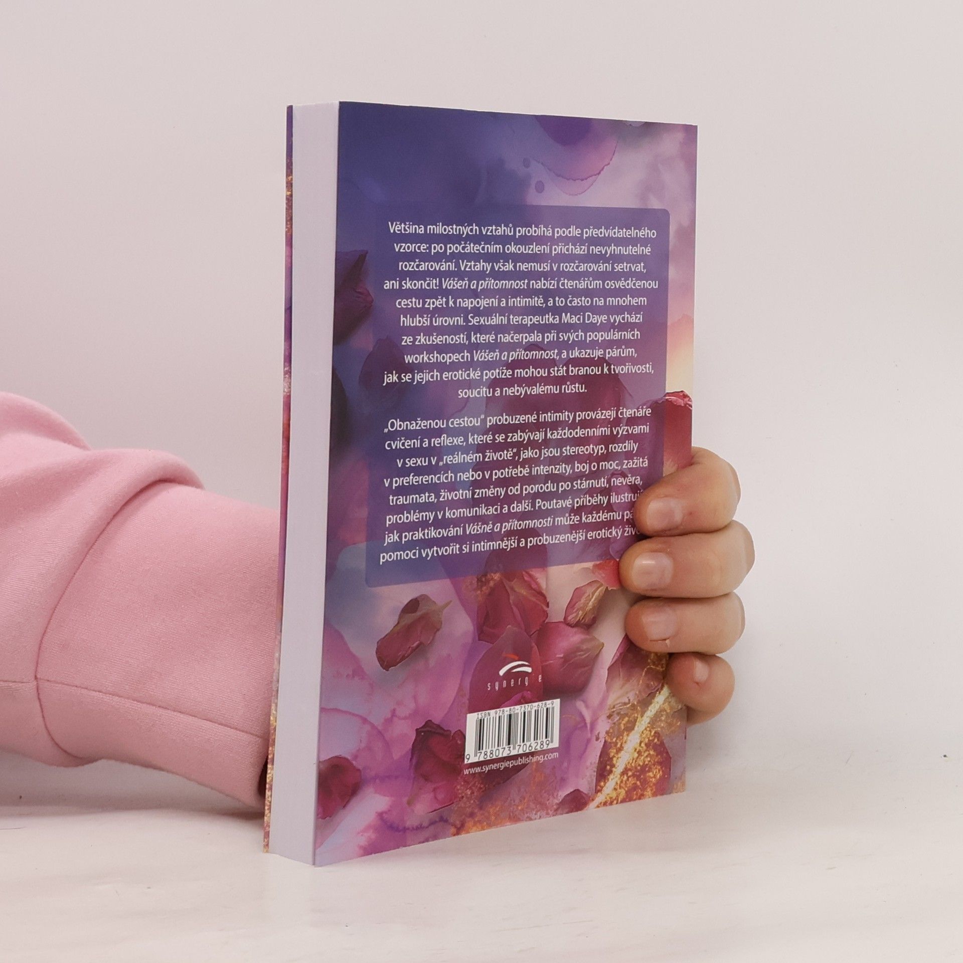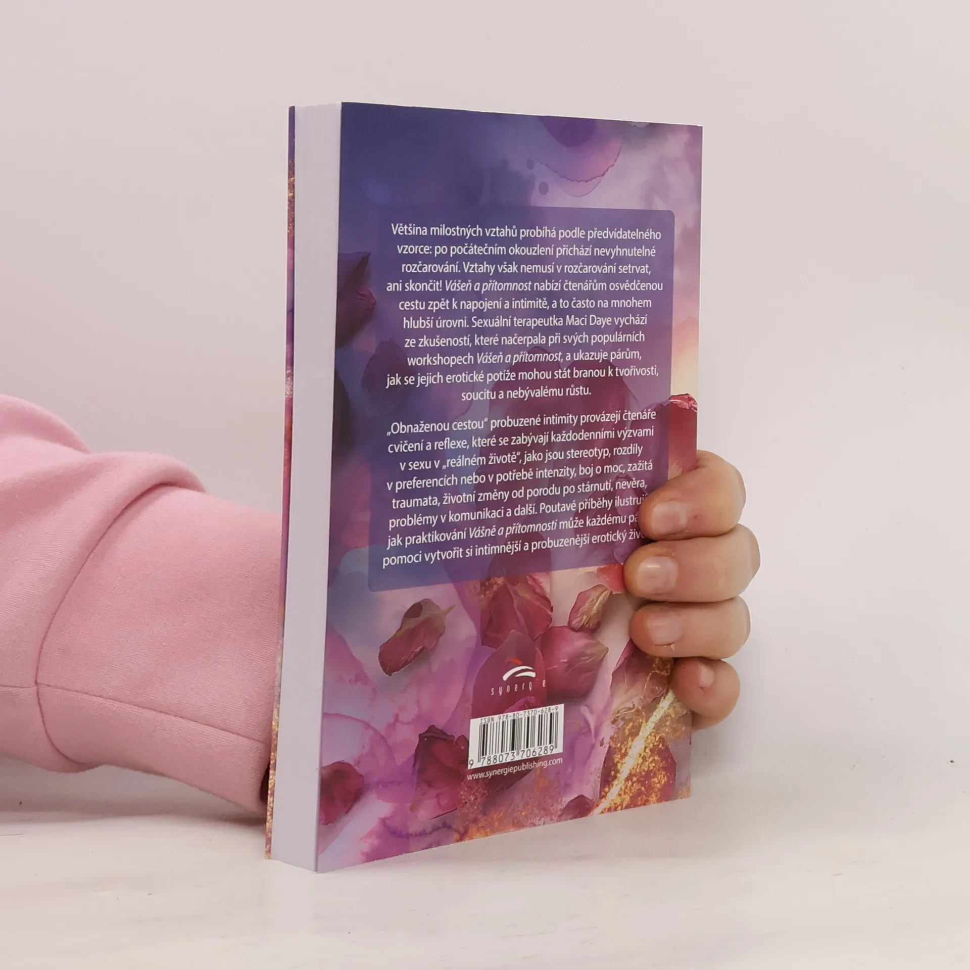 Průvodce pro páry na cestě k probuzené intimitě a vědomé sexualitěVětšina milostných vztahů probíhá podle předvídatelného vzorce: po počátečním okouzlení přichází nevyhnutelné rozčarování. Vztahy však nemusí v rozčarování setrvat, ani skončit! Vášeň a přítomnost nabízí čtenářům osvědčenou cestu zpět k napojení a intimitě, a to často na mnohem hlubší úrovni. Sexuální terapeutka Maci Daye vychází ze zkušeností, které načerpala při svých populárních workshopech Vášeň a přítomnost, a ukazuje párům, jak se jejich erotické potíže mohou stát branou k tvořivosti, soucitu a nebývalému růstu.Tím, co skutečně probouzí intimitu, není zaměření se na nové vzrušení, techniky nebo pozice, ale vědomý a všímavý přístup. Vědomý nebo všímavý přístup se odehrává ve vašem vědomí, ne ve vašem chování. Všímavý přístup není o tom, že se snažíme něco překonat, nebo že je něco „špatně“ a musí se to „opravit“. Otázkou je, jak můžeme v dlouhodobém vztahu zůstat eroticky živí, přesto že se tak důvěrně známe a jsme na sebe až příliš zvyklí. Všímavost, tedy uvědomování si přítomného okamžiku, vytváří otevřený a zvídavý stav mysli, který nám umožňuje prožívat jakékoli setkání, jako by to bylo poprvé. Všímavost může párům pomoci zažívat novost jako trvalý rys jejich sexuálních setkání, místo aby se spoléhaly na nové techniky, které jim to v posteli oživí.