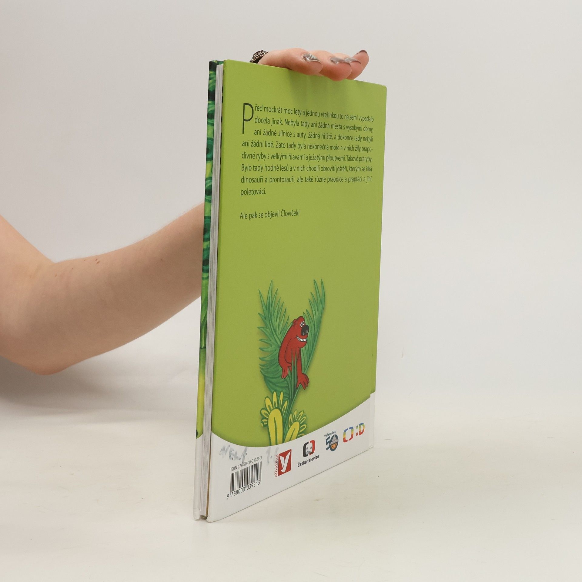 Před mockrát moc lety a jednou vteřinkou to na zemi vypadalo docela jinak. Nebyla tady ani žádná města s vysokými domy, ani žádné silnice s auty, žádná hřiště, a dokonce tady nebyli ani žádní lidé. Zato tady byla nekonečná moře a v nich žily prapodivné ryby s velkými hlavami a ježatými ploutvemi. Takové praryby. Bylo tady hodně lesů a v nich chodili obrovité ještěři, kterým se říká dinosauři brontosauři, ale také různé praopice a praptáci a jiní poletováci. Ale pak se objevil Človíček!