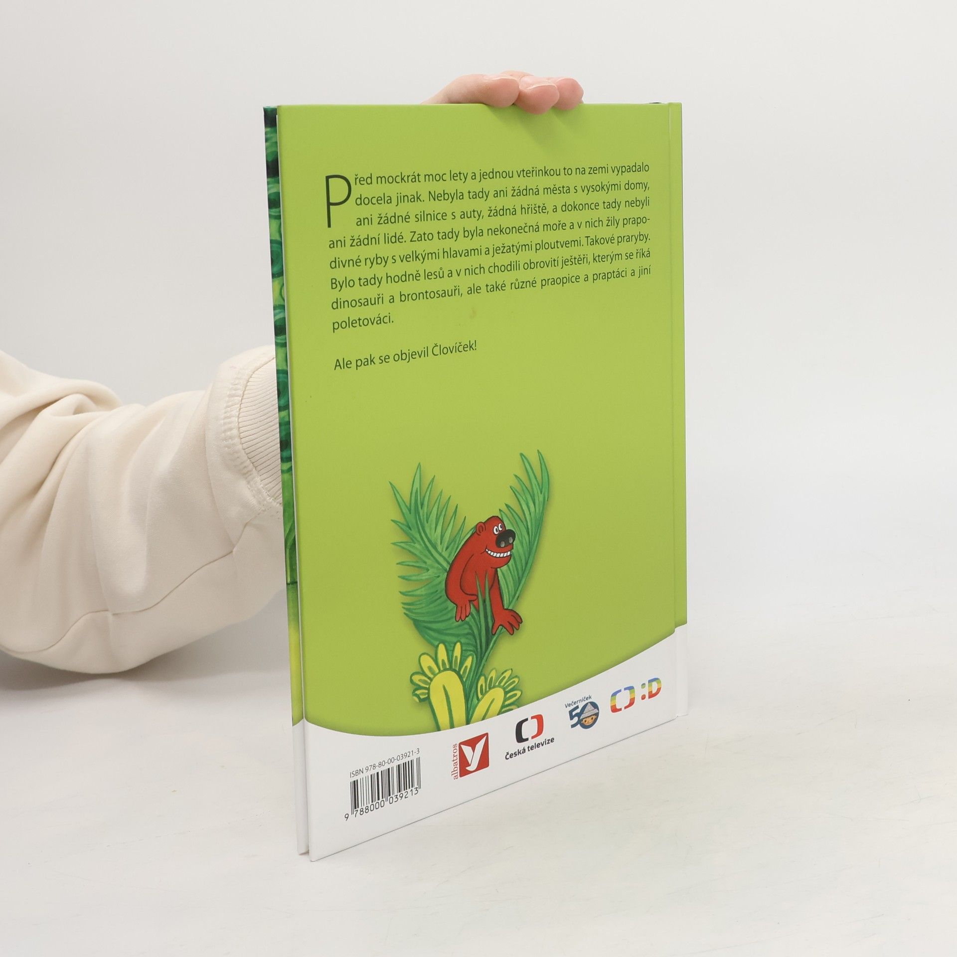 Před mockrát moc lety a jednou vteřinkou to na zemi vypadalo docela jinak. Nebyla tady ani žádná města s vysokými domy, ani žádné silnice s auty, žádná hřiště, a dokonce tady nebyli ani žádní lidé. Zato tady byla nekonečná moře a v nich žily prapodivné ryby s velkými hlavami a ježatými ploutvemi. Takové praryby. Bylo tady hodně lesů a v nich chodili obrovité ještěři, kterým se říká dinosauři brontosauři, ale také různé praopice a praptáci a jiní poletováci. Ale pak se objevil Človíček!