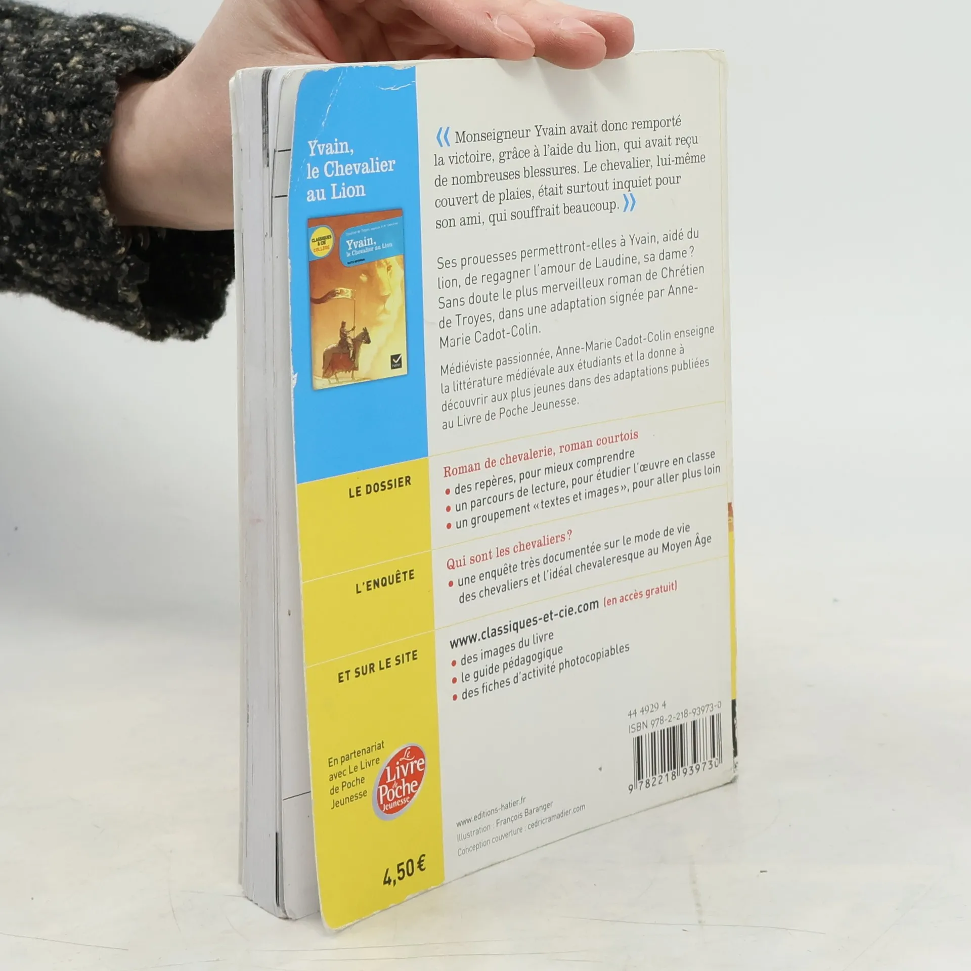 Ses prouesses permettront-elles a Yvain, aide du lion, de regagner l'amour de Laudine, sa dame ? Sans doute le plus merveilleux roman de Chretien de Troyes, dans une adaptation signee d'Anne-Marie Cadot-Colin. L'edititon Classiques & Cie College Soigneusement annote, le texte du roman est associe a un dossier illustre, qui comprend: - un guide de lecture (avec des reperes, un parcours de l'oeuvre et un groupement de documents sur le theme du merveilleux medieval), - une enquete documentaire: Qui sont les chevaliers ?.