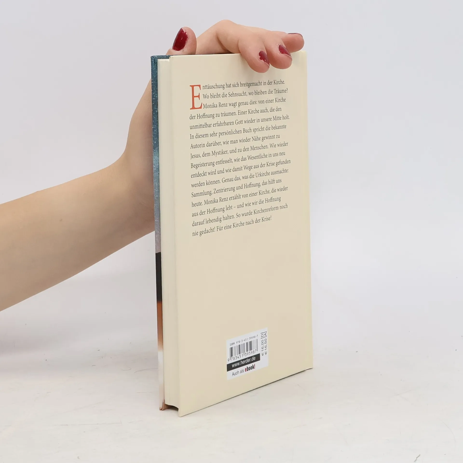 Monika Renz beschreibt in ihrem persönlichen Buch die Sehnsucht nach einer Kirche der Hoffnung, die Gott wieder ins Zentrum stellt. Sie zeigt Wege auf, wie Nähe zu Jesus und zu den Menschen gewonnen werden kann, Begeisterung entfesselt und das Wesentliche neu entdeckt wird. Ein innovativer Ansatz zur Kirchenreform nach der Krise.