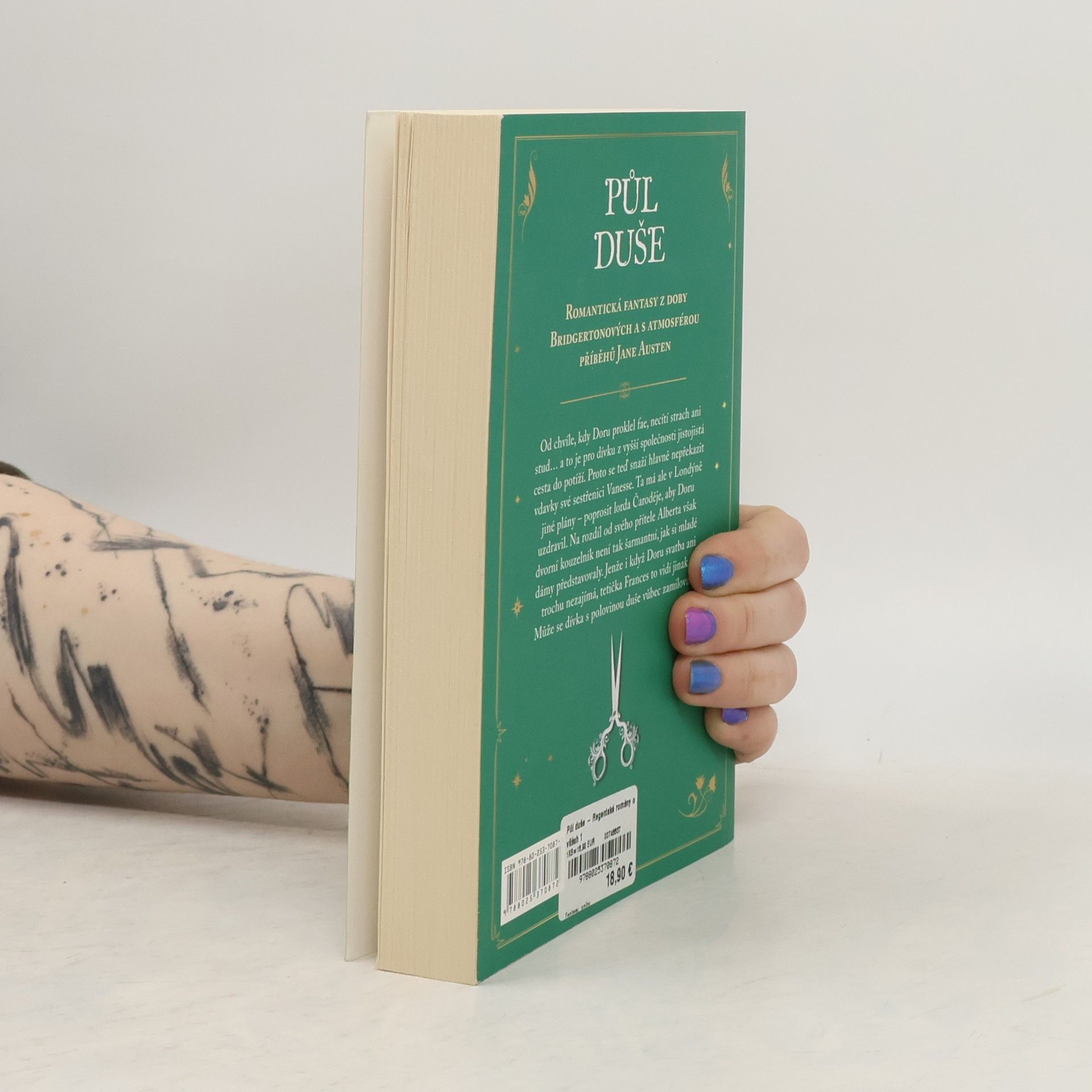 Romantická fantasy z doby Bridgertonových a s atmosférou příběhů Jane Austen. Od chvíle, kdy Doru proklel fae, necítí strach ani stud… a to je pro dívku z vyšší společnosti jistojistá cesta do potíží. Proto se teď snaží hlavně nepřekazit vdavky své sestřenici Vanesse. Ta má ale v Londýně jiné plány – poprosit lorda Čaroděje, aby Doru uzdravil. Na rozdíl od svého přítele Alberta však dvorní kouzelník není tak šarmantní, jak si mladé dámy představovaly. Jenže i když Doru svatba ani trochu nezajímá, tetička Frances to vidí jinak. Může se dívka s polovinou duše vůbec zamilovat?