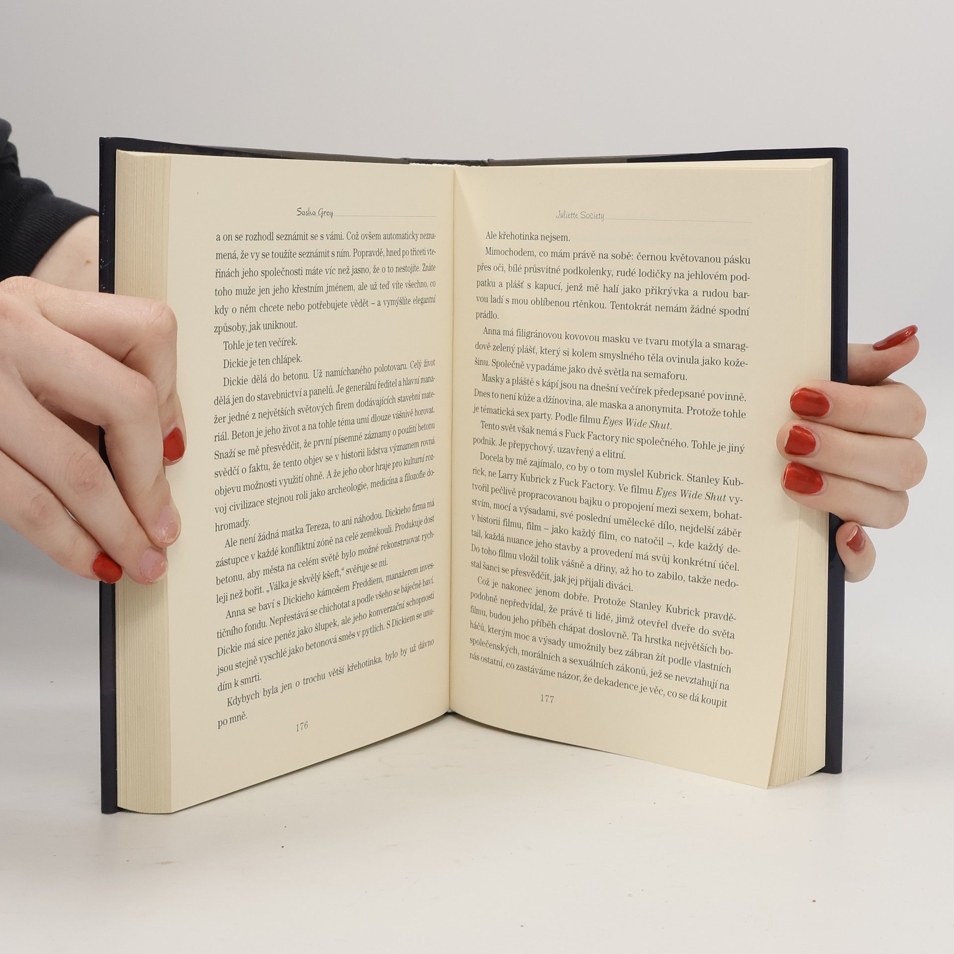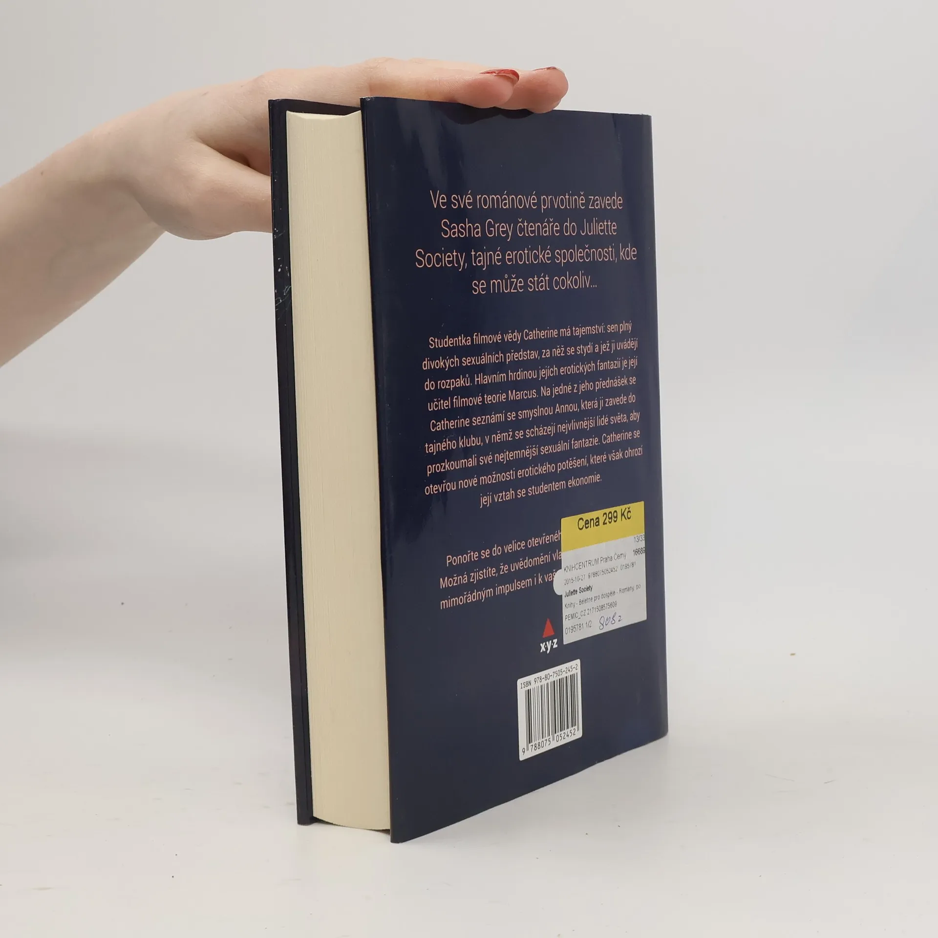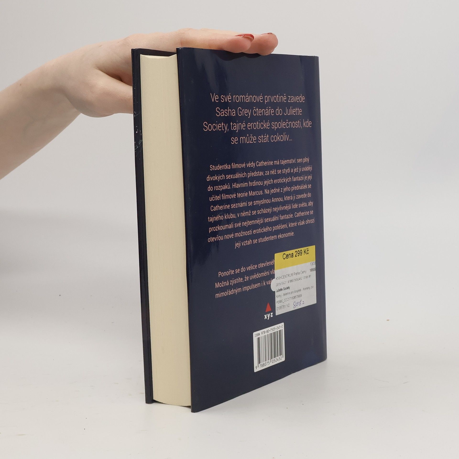 Ve své románové prvotině zavede Sasha Grey čtenáře do Juliette Society, tajné erotické společnosti, kde se může stát cokoliv… Studentka filmové vědy Catherine má tajemství: sen plný divokých sexuálních představ, za něž se stydí a jež ji uvádějí do rozpaků. Hlavním hrdinou jejích erotických fantazií je její učitel filmové teorie Marcus. Na jedné z jeho přednášek se Catherine seznámí se smyslnou Annou, která ji zavede do tajného klubu, v němž se scházejí nejvlivnější lidé světa, aby prozkoumali své nejtemnější sexuální fantazie. Catherine se otevřou nové možnosti erotického potěšení, které však ohrozí její vztah se studentem ekonomie. Ponořte se do velice otevřeného, erotického románu. Možná zjistíte, že uvědomění vlastní sexuality může být mimořádným impulsem i k vašemu duchovnímu rozvoji.