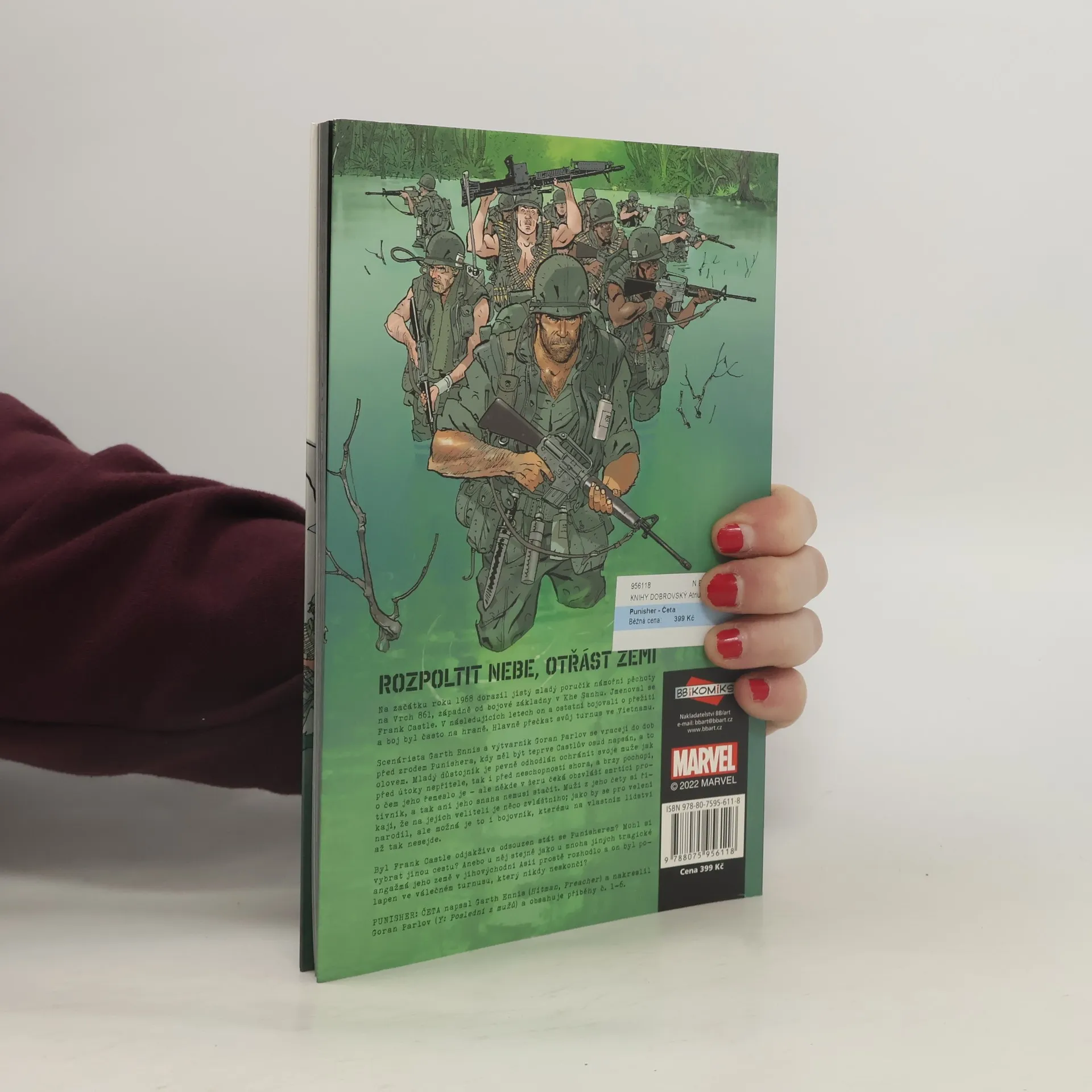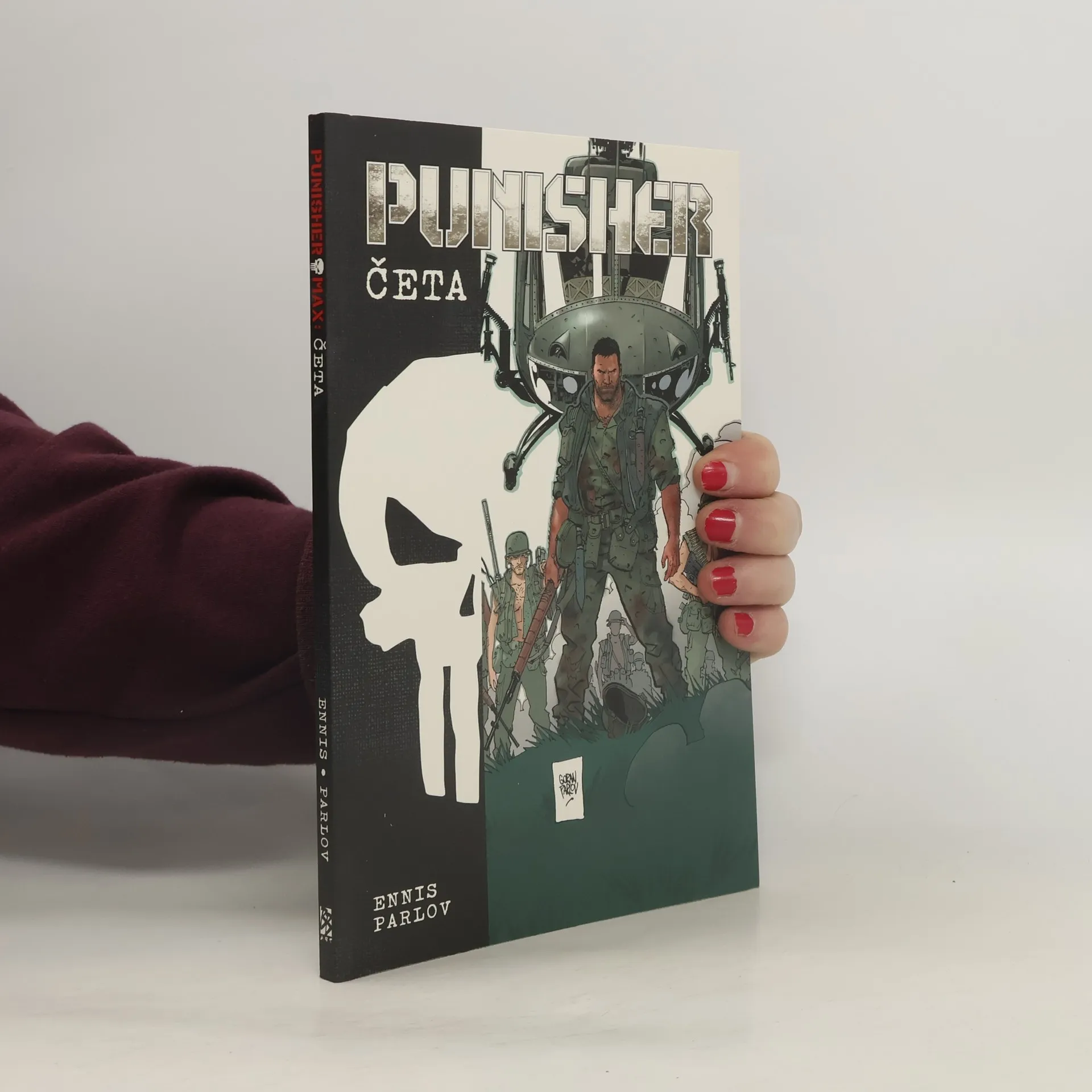 Rozpoltit nebe, otřást zemí...Na začátku roku 1968 dorazil jistý mladý poručík námořní pěchoty na Vrch 861, západně od bojové základny ve Khe Sanhu. Jmenoval se Frank Castle. V následujících letech on a ostatní bojovali o přežití a boj často byl na hraně. Hlavně přečkat svůj turnus ve Vietnamu.... ale někde v šeru čeká obzvlášť smrtící protivník, a tak ani jeho snaha nemusí stačit. Muži z jeho čety si říkají, že na jejich veliteli je něco zvláštního; jako by se pro velení narodil, ale možná je to i bojovník, kterému na vlastním lidství až tak nesejde. Byl Frank Castle odjakživa odsouzen stát se Punisherem? Mohl si vybrat jinou cestu? Anebo u něj stejně jako u mnoha jiných tragické angažmá jeho země v jihovýchodní Asii prostě rozhodlo a on byl polapen ve válečném turnusu, který nikdy neskončí?PUNISHER MAX: ČETA napsal Garth Ennis (Hitman, Preacher) a nakreslil Goran Parlov (Y: Poslední z mužů) a obsahuje příběhy č. 1–6.