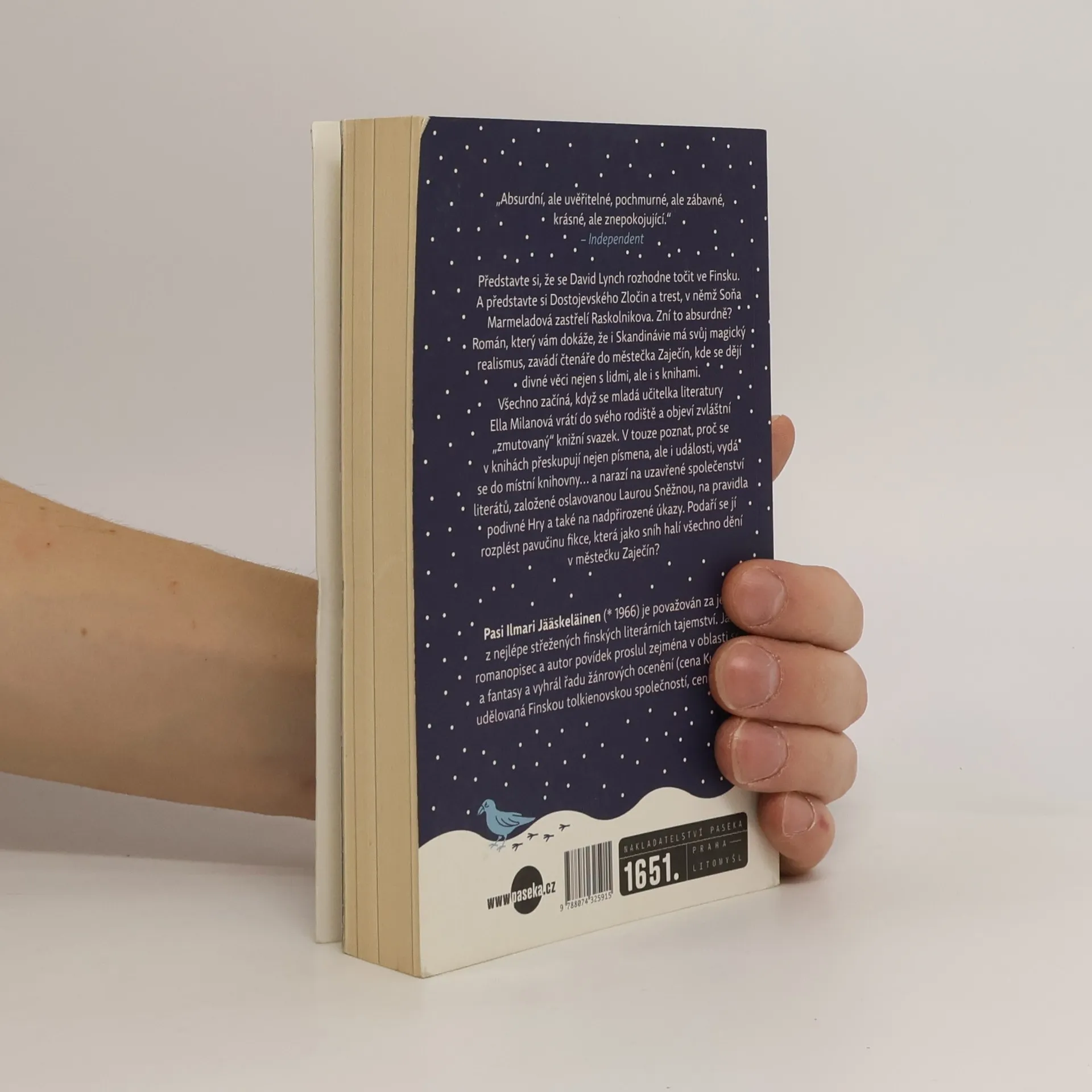 Představte si Lynchův Twin Peaks zasazený do Finska. A představte si Dostojevského Zločin a trest, v němž Soňa Marmeladová zastřelí Raskolnikova. Zní to absurdně? Román, který vám dokáže, že i Skandinávie má svůj magický realismus, zavádí čtenáře do městečka Zaječín, kde se dějí divné věci nejen s lidmi, ale i s knihami. Všechno začíná, když se mladá učitelka literatury Ella Milanová vrátí do svého rodiště a objeví tam zvláštní knižní svazek, který jí vyrazí dech. V místní knihovně se vydá po stopě záhadných událostí... a brzy narazí na uzavřené společenství literátů, založené oslavovanou Laurou Sněžnou, na pravidla podivné Hry a také na nadpřirozené úkazy. Podaří se jí odhalit, co se ve skutečnosti stalo s desátým členem literárního spolku, a rozplést pavučinu všeprostupující fikce?
