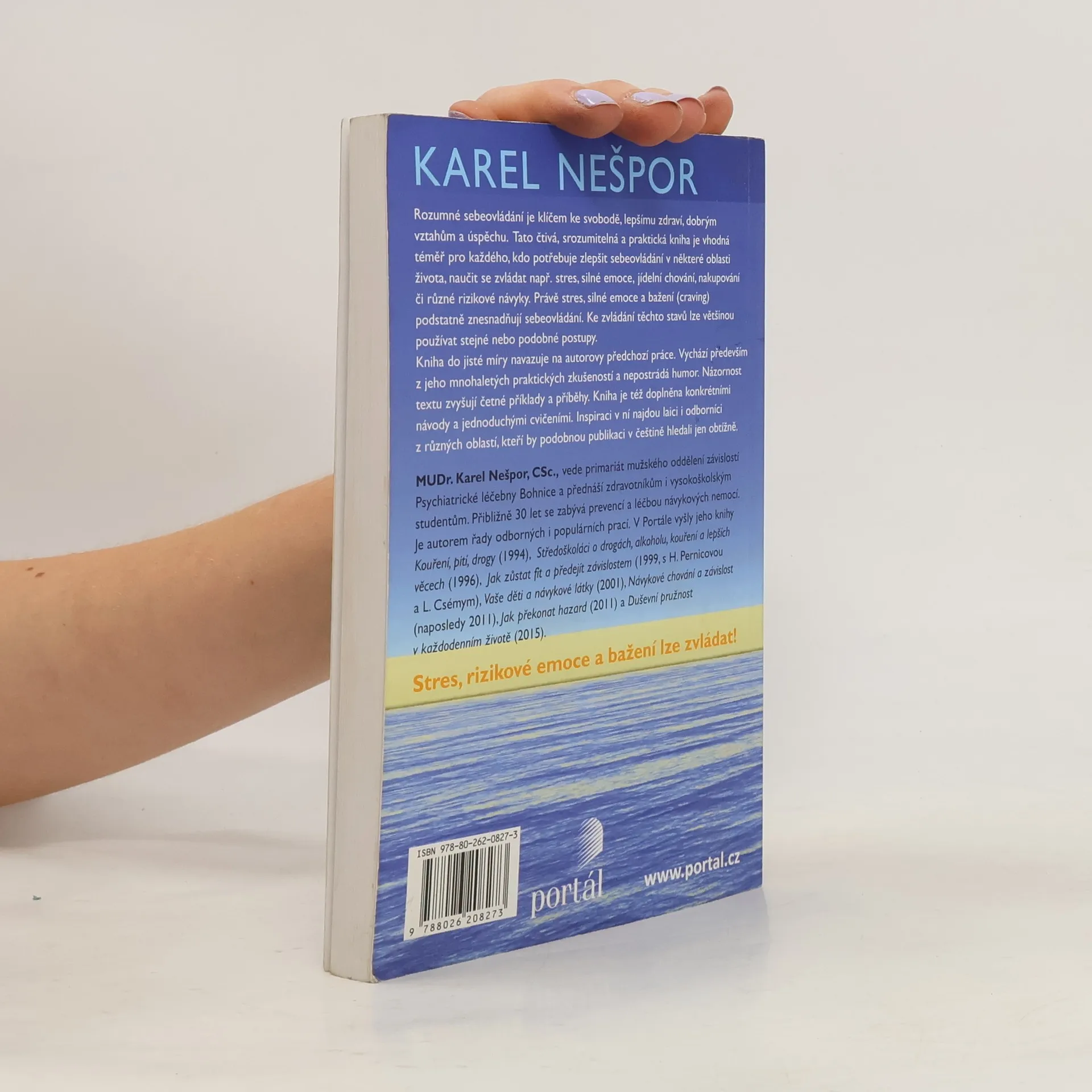 Rozumné sebeovládání je klíčem ke svobodě, zdraví, vztahům a úspěchu. Tato kniha je čtivá, srozumitelná a praktická, ideální pro každého, kdo chce zlepšit sebeovládání v různých oblastech života, jako je zvládání stresu, silných emocí, jídelního chování či rizikových návyků. Stres a silné emoce podstatně ztěžují sebeovládání, avšak lze na ně aplikovat podobné postupy. Kniha navazuje na autorovy předchozí práce zaměřené na léčbu návykových nemocí a zvládání stresu. Vychází z jeho dlouholetých praktických zkušeností a obsahuje humor. Zajímavost textu zvyšují příklady a příběhy z každodenního života. Kniha nabízí konkrétní návody a jednoduchá cvičení. Inspiraci zde najdou nejen laici, ale i odborníci z různých oborů, přičemž podobnou publikaci v češtině je obtížné nalézt. Autor, MUDr. Karel Nešpor, CSc., vede primariát mužského oddělení závislostí v Psychiatrické léčebně Bohnice a přednáší zdravotníkům a studentům. Již 30 let se věnuje prevenci a léčbě návykových nemocí a je autorem řady odborných i populárních prací.