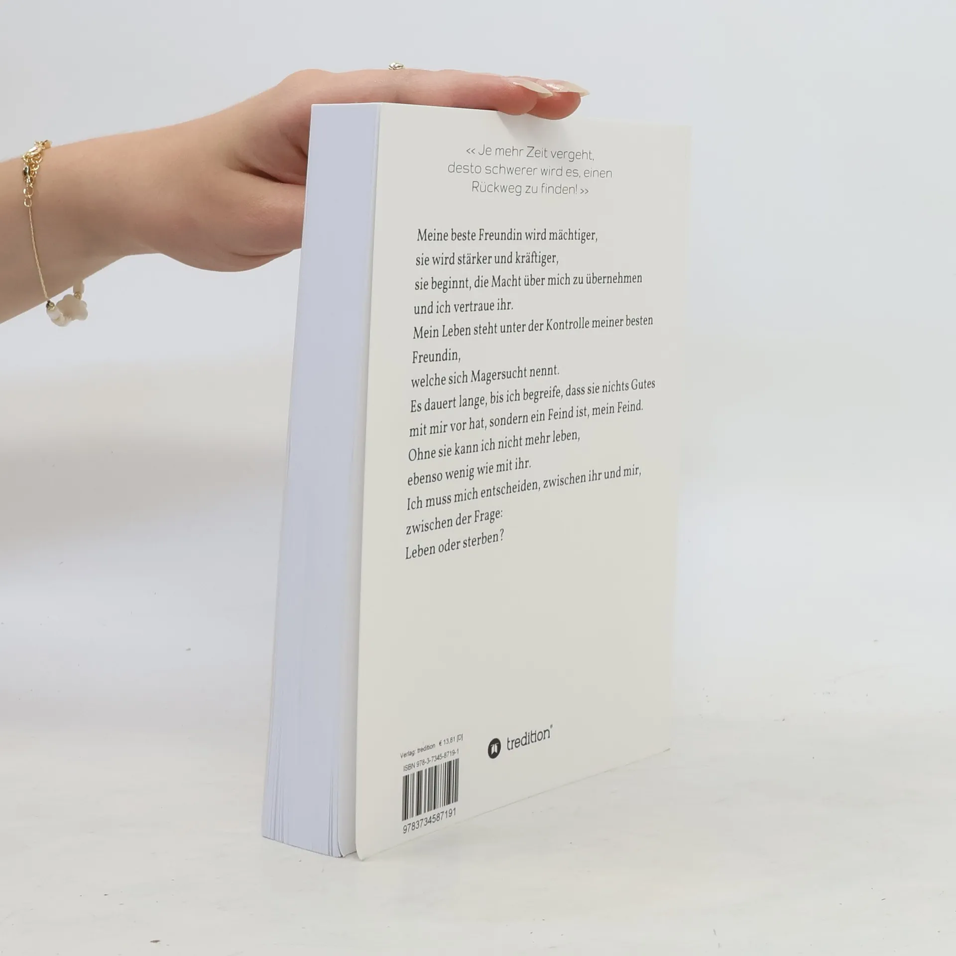 In "Glücklich auf ihre Weise" beschreibt die Autorin ihren Kampf gegen die Magersucht, die sie zunächst als beste Freundin betrachtet. Sie lernt, die Krankheit zu bekämpfen und findet schließlich den Weg zurück zu einem glücklichen Leben. Der Prozess des Heilens und der Auseinandersetzung mit der psychischen Störung steht im Mittelpunkt.