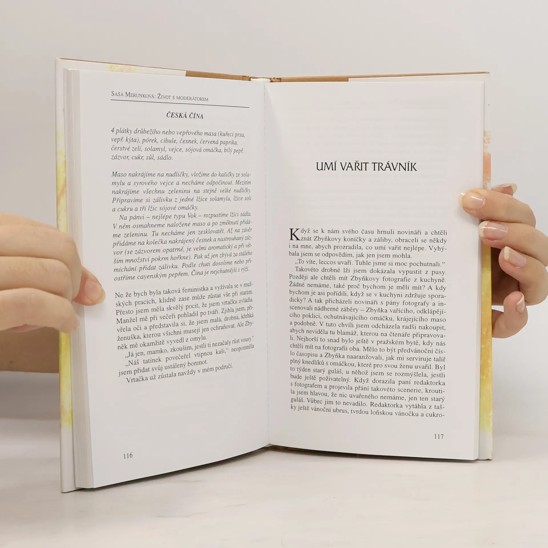 Kniha je volným vyprávěním méně či více veselých historek, ale i vyhrocených životních situací rodiny moderátora Zbyňka Merunky. Autorka (moderátorova manželka) v ní chtěla ukázat, že i lidé populární jsou z masa a kostí se svými nešvary, méně či více ošklivými povahovými vlastnostmi, a že i moderátorova rodina prožívá docela obyčejný život se starostmi o děti, o rodiče a o zaměstnání. Že člověk, který z obrazovky působí velmi seriózně, možná i jako suchar, je naopak v obyčejném životě veselý a má sklon k černému humoru. Že ho manželka otravuje při sledování fotbalu v televizi nejapnými otázkami, jako tisíce jiných manželek, a že se rád vytratí za mužskými na pivo, jako tisíce jiných manželů. Kniha je doplněna barevnými fotografiemi.