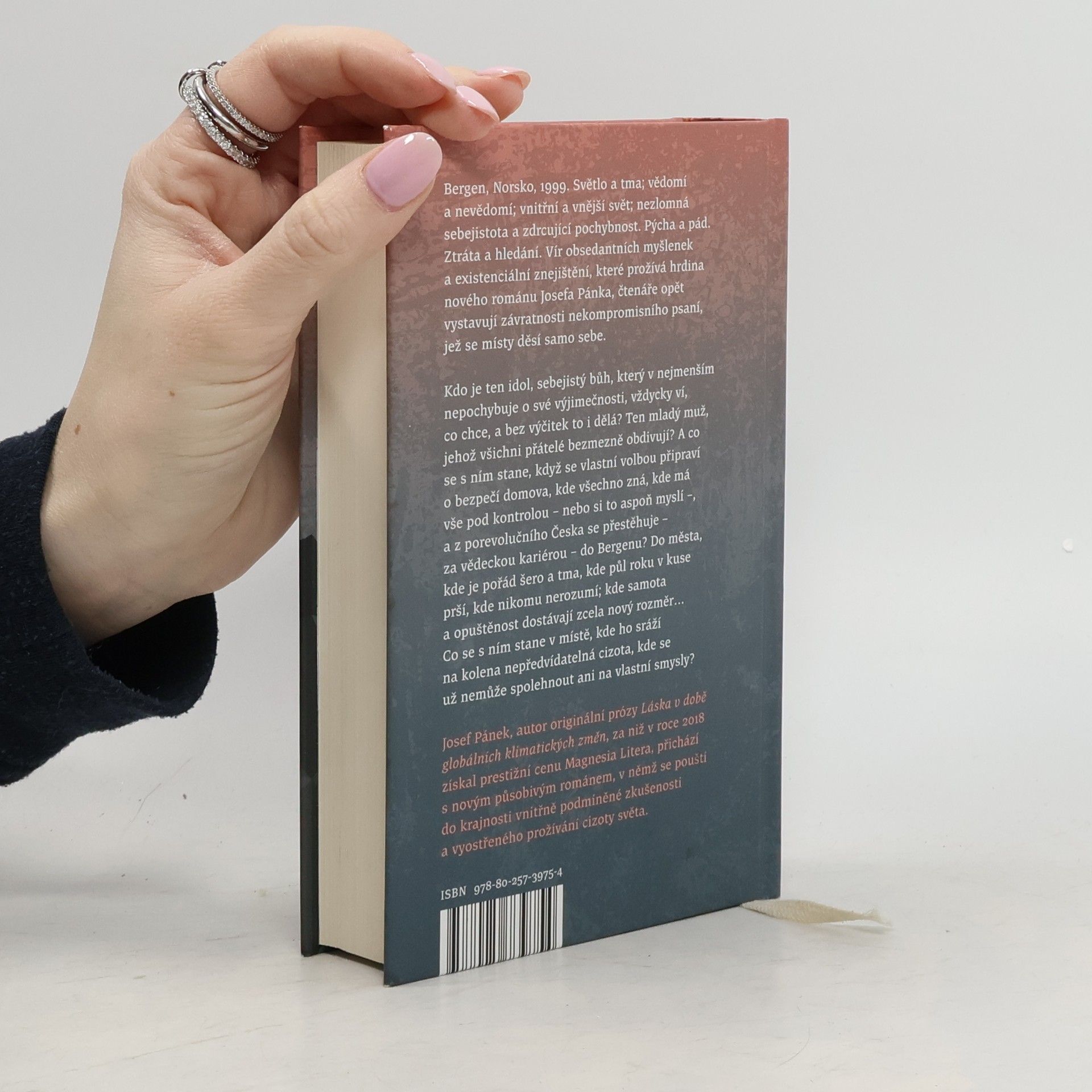 Bergen, Norsko, 1999. Světlo a tma; vědomí a nevědomí; vnitřní a vnější svět; nezlomná sebejistota a zdrcující pochybnost. Pýcha a pád. Ztráta a hledání. Vír obsedantních myšlenek a existenciální znejištění, které prožívá hrdina nového románu Josefa Pánka, čtenáře opět vystavují závratnosti nekompromisního psaní, jež se místy děsí samo sebe. Kdo je ten idol, sebejistý bůh, který v nejmenším nepochybuje o své výjimečnosti, vždycky ví, co chce, a bez výčitek to i dělá? Ten mladý muž, jehož všichni přátelé bezmezně obdivují? A co se s ním stane, když se vlastní volbou připraví o bezpečí domova, kde všechno zná, kde má vše pod kontrolou – nebo si to aspoň myslí –, a z porevolučního Česka se přestěhuje – za vědeckou kariérou – do Bergenu? Do města, kde je pořád šero a tma, kde půl roku v kuse prší, kde nikomu nerozumí; kde samota a opuštěnost dostávají zcela nový rozměr… Co se s ním stane v místě, kde ho sráží na kolena nepředvídatelná cizota, kde se už nemůže spolehnout ani na vlastní smysly? Josef Pánek, autor originální prózy Láska v době globálních klimatických změn, za niž v roce 2018 získal prestižní cenu Magnesia Litera, přichází s novým působivým románem, v němž se pouští do krajnosti vnitřně podmíněné zkušenosti a vyostřeného prožívání cizoty světa.