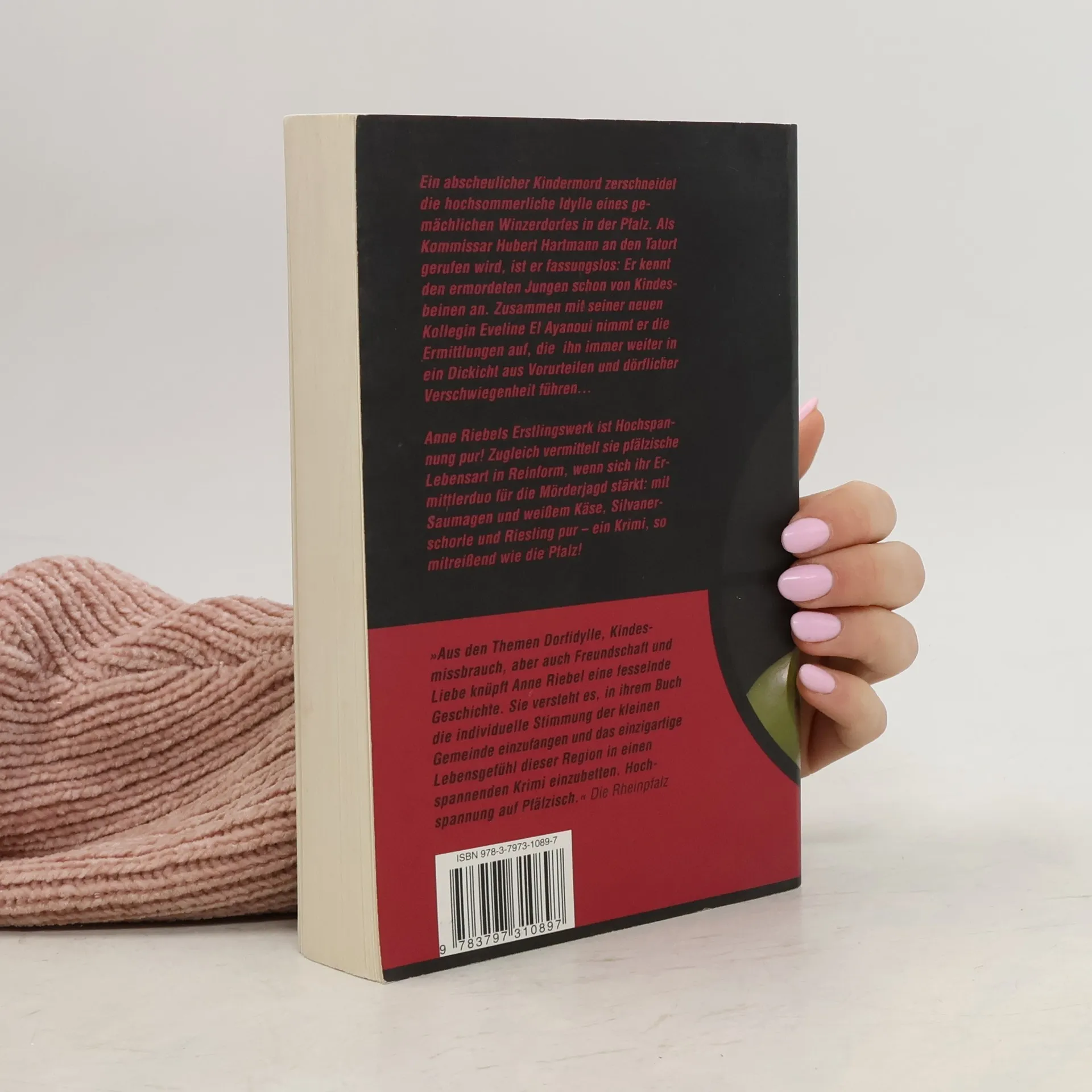 Ein grausamer Kindermord erschüttert ein ruhiges Winzerdorf in der Pfalz. Kommissar Hubert Hartmann, der den Jungen kannte, ermittelt mit seiner neuen Kollegin Eveline El Ayanoui und stößt auf Vorurteile und Geheimnisse. Anne Riebel verbindet Dorfidylle mit Themen wie Kindesmissbrauch und Freundschaft in einem spannenden Krimi.