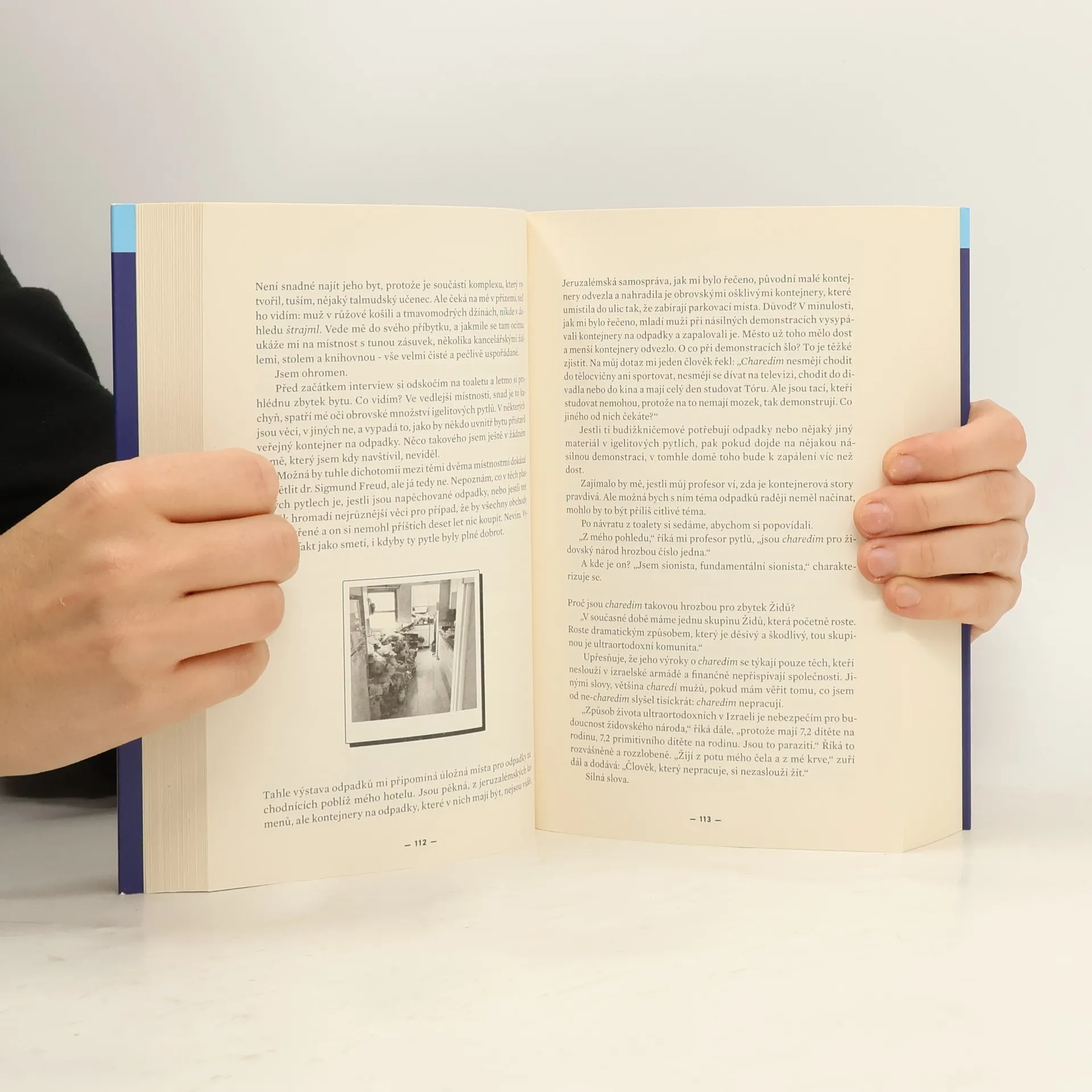 Oblíbený český spisovatel přichází s novou knihou, ve které se vydává na nejtěžší cestu svého života – do ortodoxního světa Židů v Jeruzalémě, kde sám vyrůstal. Po letech strávených v liberálním New Yorku se rozhodl znovu prozkoumat prostředí, které opustil, a klást otázky, které ho trápily. Zjistil, že jeho bývalí rabíni by si v dnešním "liberálním" světě poradili, a tak se vrátil, aby se ptal, proč se židovští muži nesmí dívat na ženy. Tuvia klade řadu dalších provokativních otázek: Jak to, že někteří ortodoxní Židé neznají Bibli? Proč uctívají rabína víc než Boha? Proč se muži nesmějí dívat na ženy a ženy na muže? Jaký je důvod středověkého oblečení a co se stane po vzkříšení? Aby našel odpovědi, procházel Jeruzalémem, navštěvoval školy, hroby a mluvil s lidmi různých společenských vrstev. Jeho otázky vyprovokovaly otevřené diskuse, díky nimž odhalil skutečné názory a postoje. Tuvia skládá zábavný a "politicky" nekorektní obraz dnešního života ortodoxních Židů, plný vtipných dialogů a pronikavých pozorování. Na této cestě hledá také sám sebe.