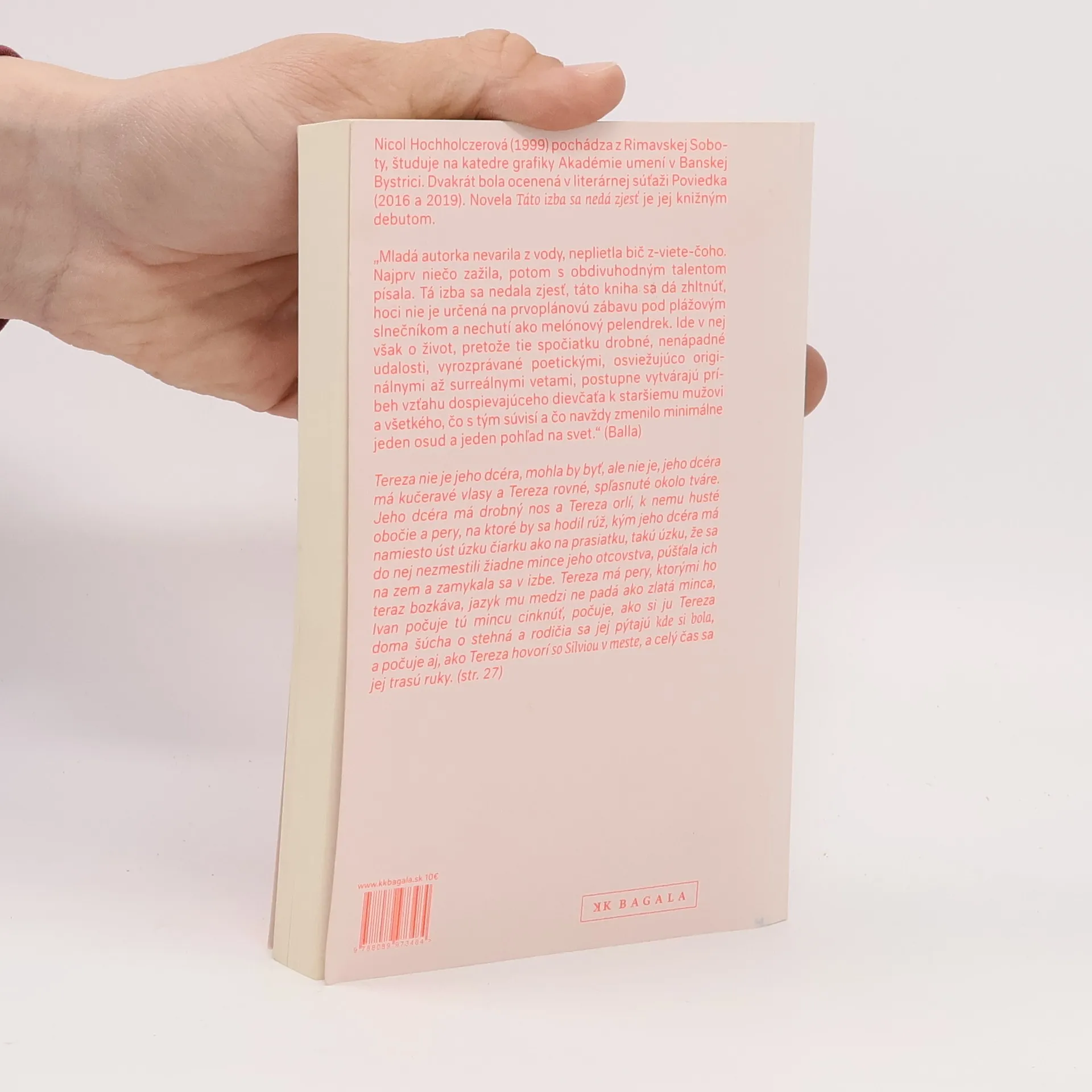 Sú debuty tápajúce, rozpačité, kvalitatívne nevyvážené, ale tento medzi ne nepatrí. Hochholczerová sa nebojí prísť s kontroverznými, drásavými témami, nekladie si servítky pred ústa, ide s kožou na trh a nie je a priori posratá z toho, ako to bude prijaté a za to jej tlieskam. Táto kniha sa dá zhltnúť, ale jej obsah v nás ešte dlho, veľmi dlho zostane nestrávený kvasiť. A to je dobre. (Ivana Gibová) Mladá autorka nevarila z vody, neplietla bič z-viete-čoho. Najprv niečo zažila, potom s obdivuhodným talentom písala. Tá izba sa nedala zjesť, táto kniha sa dá zhltnúť, hoci nie je určená na prvoplánovú zábavu pod plážovým slnečníkom a nechutí ako melónový pelendrek. Ide v nej však o život, pretože tie spočiatku drobné, nenápadné udalosti, vyrozprávané poetickými, osviežujúco originálnymi až surreálnymi vetami, postupne vytvárajú príbeh vzťahu dospievajúceho dievčaťa k staršiemu mužovi a všetkého, čo s tým súvisí a čo navždy zmenilo minimálne jeden osud a jeden pohľad na svet. (Balla)
