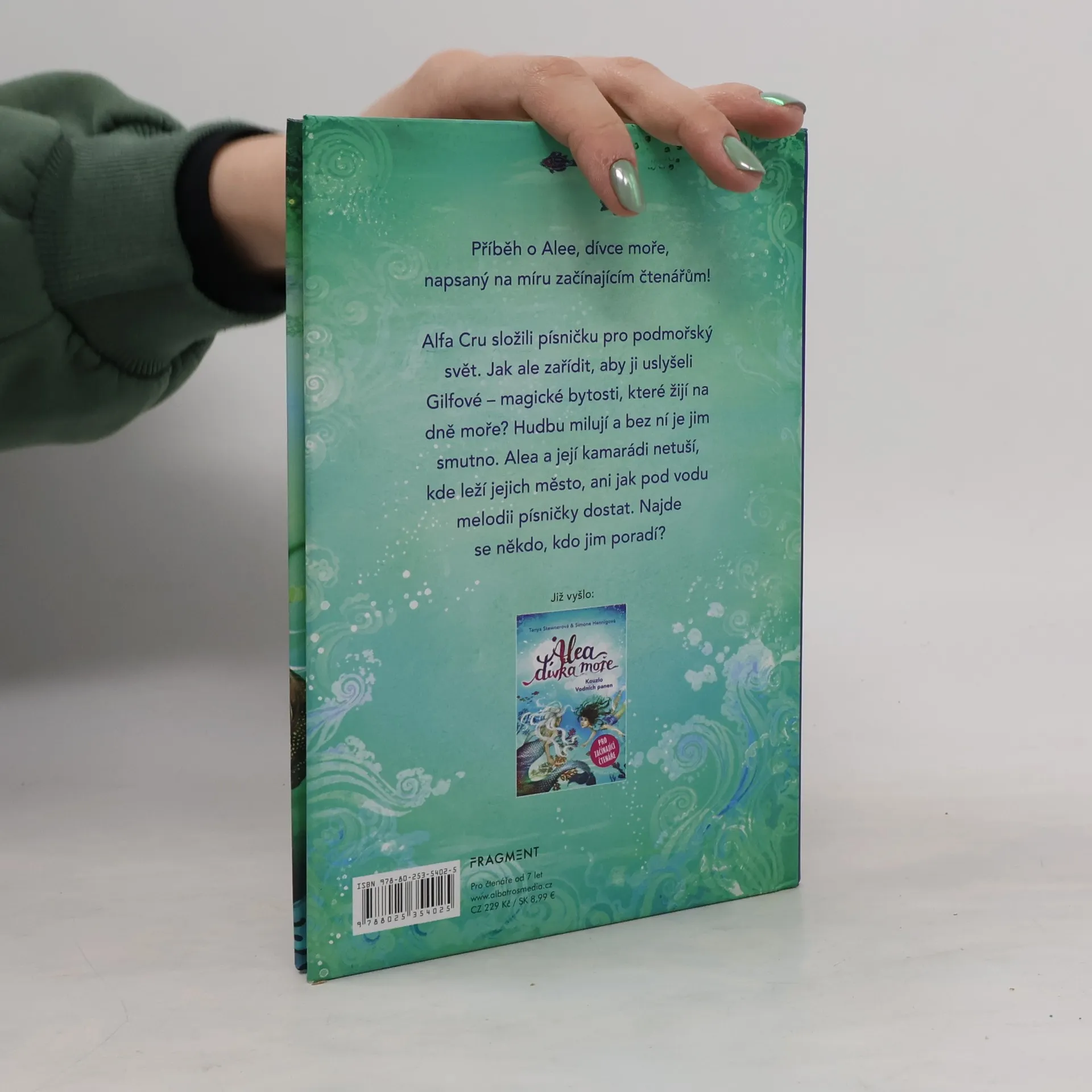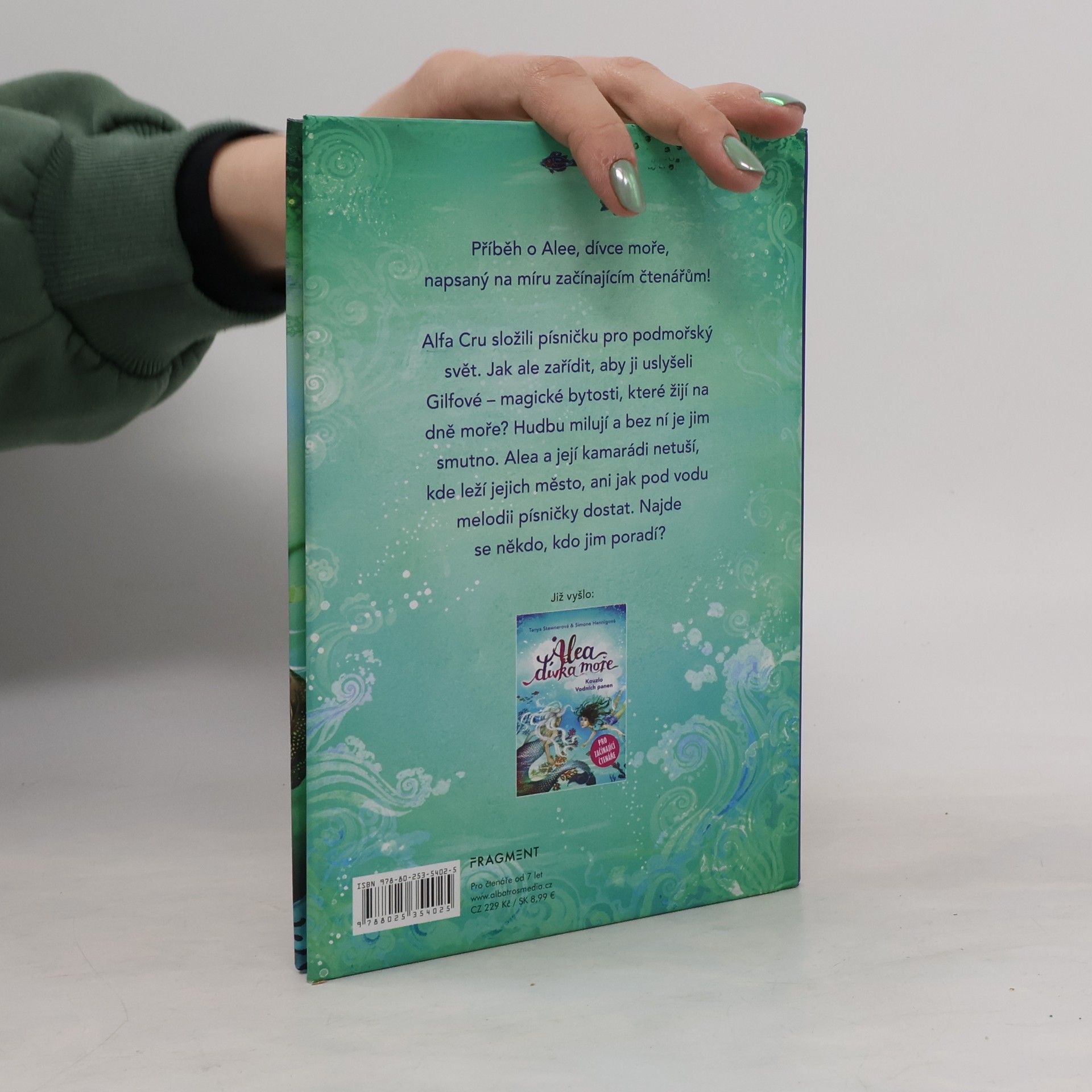 Podaří se Alee a jejím kamarádům potěšit hudbou podmořské bytosti? Napsáno na míru začínajícím čtenářům. Příběh o Alee, dívce moře, napsaný na míru začínajícím čtenářům! Alfa Cru složili písničku pro podmořský svět. Jak ale zařídit, aby ji uslyšeli Gilfové – magické bytosti, které žijí na dně moře? Hudbu milují a bez ní je jim smutno. Alea a její kamarádi netuší, kde leží jejich město, ani jak pod vodu melodii písničky dostat. Najde se někdo, kdo jim poradí?