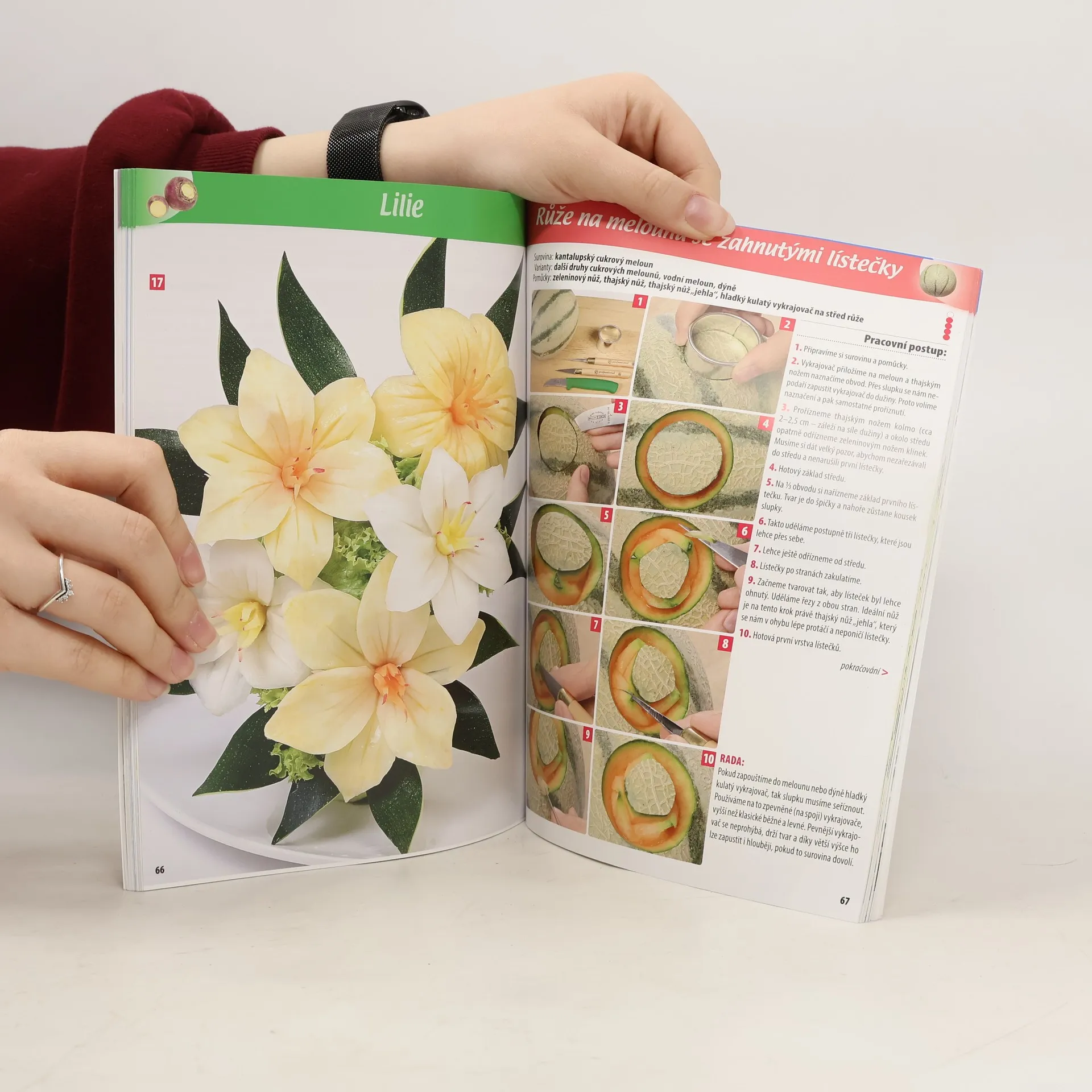 Dekorace z vyřezávané zeleniny a ovoce se běžně objevují na slavnostních stolech od pětihvězdičkových hotelů až po rodinné oslavy. V době, kdy každý hledá cestu, jak své hosty zaujmout, se carving určitě mnohým hodí. Díky této knize se i vy můžete naučit vytvářet efektní květy ze zeleniny a melounů. Dozvíte se vše – od seznámení se s náčiním přes základní techniky až po finální přípravu. A to srozumitelně a jednoduše díky množství postupových fotografií.