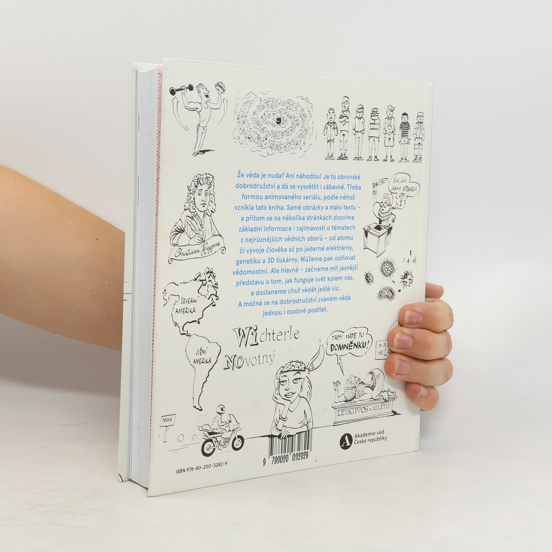 Rozsvítit žárovku, polknout prášek, zapnout počítač – to všechno nám připadá docela normální. Jenže za každou z těch věcí se skrývají geniální vědecké objevy a vynálezy. Že věda je nuda? Ani náhodou! Je to obrovské dobrodružství a dá se vysvětlit i tak, aby nás bavilo – třeba formou animovaného seriálu, podle něhož vznikla tato knížka. Samé obrázky a málo textu – a přitom se na několika stránkách dozvíme základní informace i zajímavosti o celé řadě témat z nejrůznějších vědních oborů – od atomu, vzniku vesmíru či vývoje člověka až po jaderné elektrárny, genetiku a 3D tiskárny. Díky této publikaci začneme mít jasnější představu o tom, jak funguje svět kolem nás, a dostaneme chuť vědět ještě víc. A možná se na tom dobrodružství zvaném věda jednou i osobně podílet.