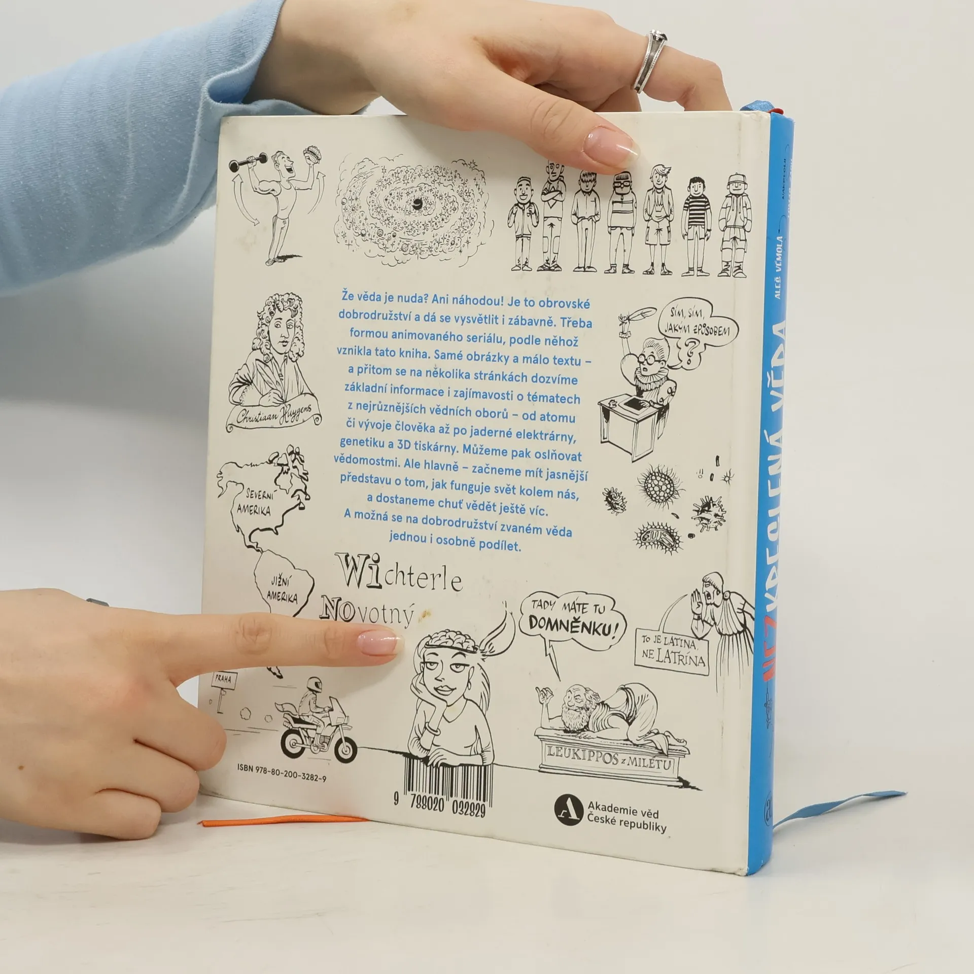 Rozsvítit žárovku, polknout prášek, zapnout počítač – to všechno nám připadá docela normální. Jenže za každou z těch věcí se skrývají geniální vědecké objevy a vynálezy. Že věda je nuda? Ani náhodou! Je to obrovské dobrodružství a dá se vysvětlit i tak, aby nás bavilo – třeba formou animovaného seriálu, podle něhož vznikla tato knížka. Samé obrázky a málo textu – a přitom se na několika stránkách dozvíme základní informace i zajímavosti o celé řadě témat z nejrůznějších vědních oborů – od atomu, vzniku vesmíru či vývoje člověka až po jaderné elektrárny, genetiku a 3D tiskárny. Díky této publikaci začneme mít jasnější představu o tom, jak funguje svět kolem nás, a dostaneme chuť vědět ještě víc. A možná se na tom dobrodružství zvaném věda jednou i osobně podílet.