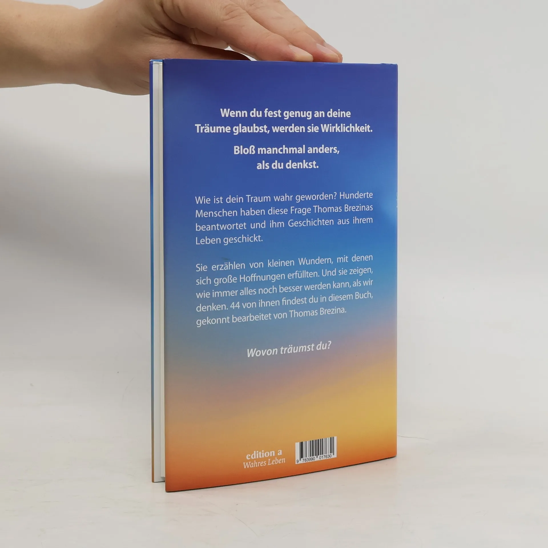 Thomas Brezina präsentiert in seiner neuen Geschichtensammlung wahre Geschichten zum Thema Träume. Das Buch zeigt, wie sich das Wunderbare im Alltäglichen versteckt und inspiriert mit berührenden Erzählungen von großen und kleinen Träumen. Ein ideales Geschenk, das Freude und Hoffnung verspricht.