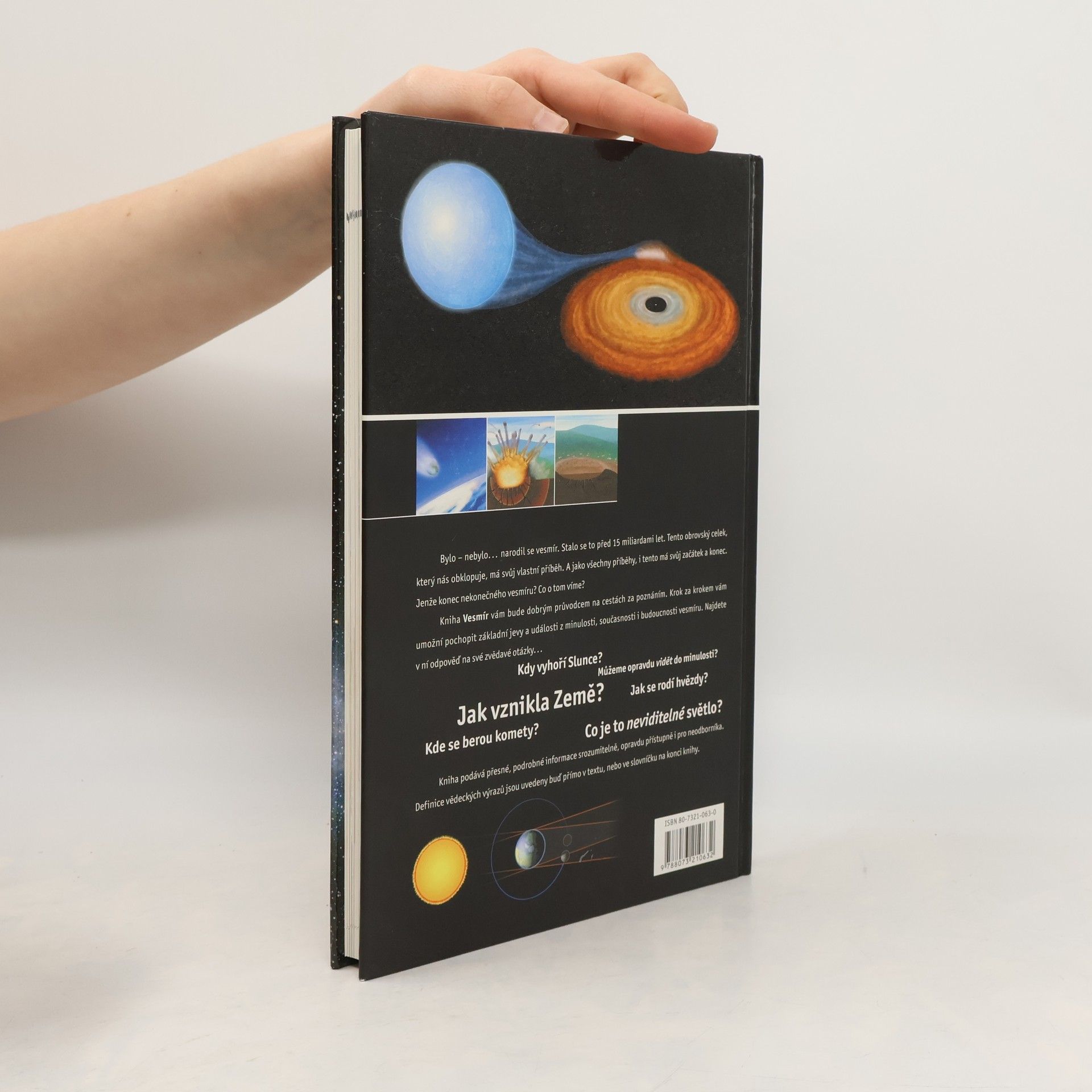 Sluneční soustava, planety a jejich měsíce, hvězdy a galaxie, struktura vesmíru, astronomické pozorování, Kosmický výzkum. Vyšlo v edici Cesty poznání.