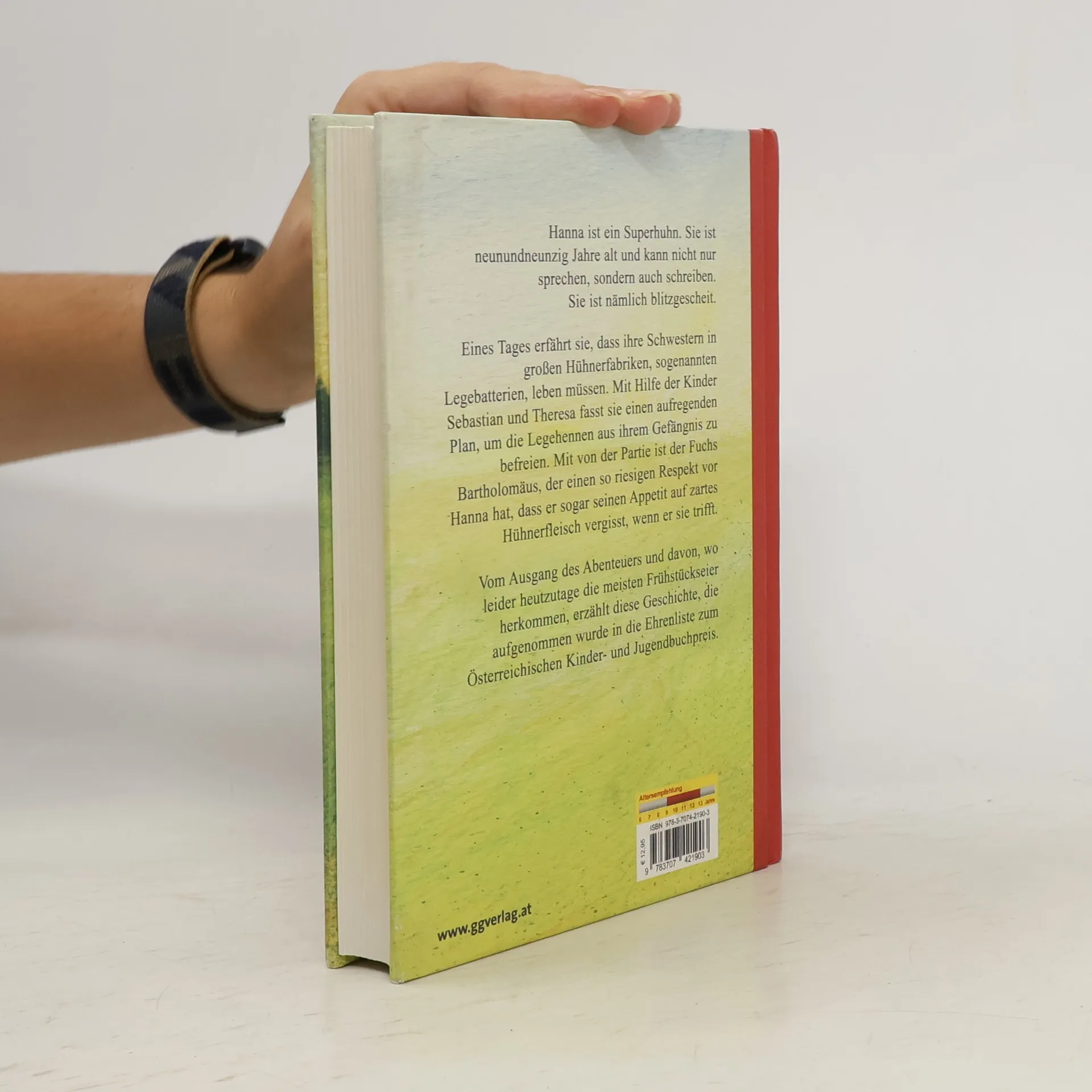 Hanna ist ein Superhuhn. Sie ist neunundneunzig Jahre alt und kann nicht nur sprechen, sondern auch schreiben. Eines Tages erfährt sie, dass ihre Schwestern in großen Hühnerfabriken, sogenannten Legebatterien, leben müssen. Mit Hilfe der Kinder Sebastian und Theresa möchte sie die Hennen aus ihrem Gefängnis befreien ... Man erfährt nicht nur vom Ausgang des spannenden Abenteuers, sondern auch davon, wo leider heutzutage die meisten Frühstückseier herkommen.