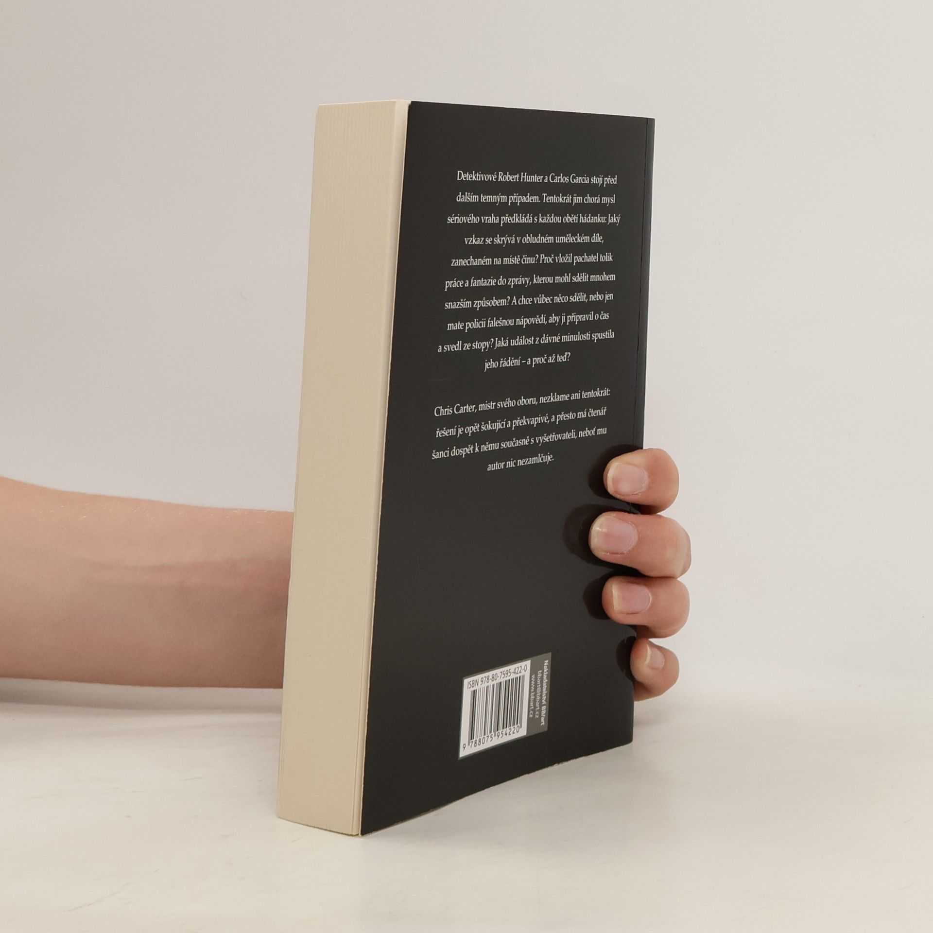 Detektivové Robert Hunter a Carlos Garcia stojí před dalším temným případem. Tentokrát jim chorá mysl sériového vraha předkládá s každou obětí hádanku: Jaký vzkaz se skrývá v obludném uměleckém díle, zanechaném na místě činu? Proč vložil pachatel tolik práce a fantazie do zprávy, kterou mohl sdělit mnohem snazším způsobem? A chce vůbec něco sdělit, nebo jen mate policii falešnou nápovědí, aby ji připravil o čas a svedl ze stopy? Jaká událost z dávné minulosti spustila jeho řádění – a proč až teď? Chris Carter, mistr svého oboru, nezklame ani tentokrát: řešení je opět šokující a překvapivé, a přesto má čtenář šanci dospět k němu současně s vyšetřovateli, neboť mu autor nic nezamlčuje.