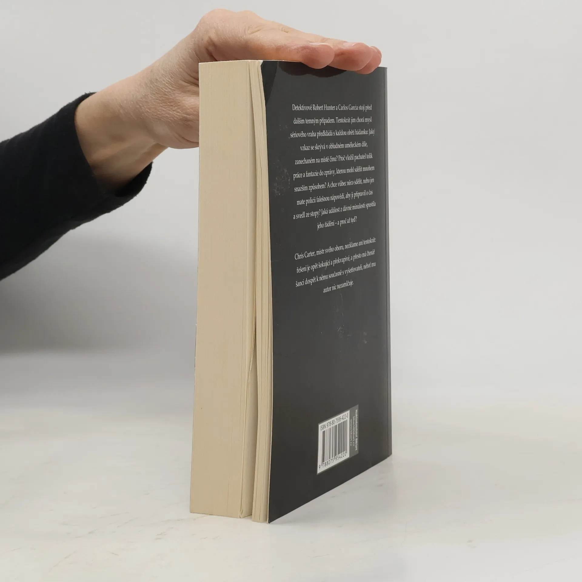 Detektivové Robert Hunter a Carlos Garcia stojí před dalším temným případem. Tentokrát jim chorá mysl sériového vraha předkládá s každou obětí hádanku: Jaký vzkaz se skrývá v obludném uměleckém díle, zanechaném na místě činu? Proč vložil pachatel tolik práce a fantazie do zprávy, kterou mohl sdělit mnohem snazším způsobem? A chce vůbec něco sdělit, nebo jen mate policii falešnou nápovědí, aby ji připravil o čas a svedl ze stopy? Jaká událost z dávné minulosti spustila jeho řádění – a proč až teď? Chris Carter, mistr svého oboru, nezklame ani tentokrát: řešení je opět šokující a překvapivé, a přesto má čtenář šanci dospět k němu současně s vyšetřovateli, neboť mu autor nic nezamlčuje.