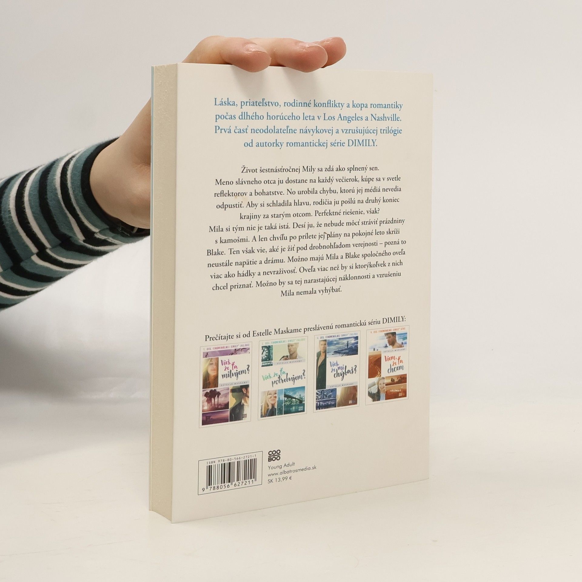 Novinka od autorky romantickej série DIMILY, ktorej príbeh je zasadený do Los Angeles a Nashvillu počas dlhého a horúceho leta. Prvá časť neodolateľne návykovej a vzrušujúcej trilógie pretkanej láskou, priateľstvom, rodinnými konfliktmi a kopou romantiky. Život šestnásťročnej Mily sa zdá ako splnený sen. Meno slávneho otca ju dostane na každý večierok, kúpe sa v svetle reflektorov a bohatstve. No urobila chybu, ktorú jej médiá nevedia odpustiť. Aby si schladila hlavu, rodičia ju pošlú na druhý koniec krajiny za starým otcom. Perfektné riešenie, však? Mila si tým nie je taká istá. Desí ju, že nebude môcť stráviť prázdniny s kamošmi. A len chvíľu po prílete jej plány na pokojné leto skríži Blake. Ten totiž vie, aké je žiť pod drobnohľadom verejnosti – pozná to neustále napätie a drámu. Možno majú Mila a Blake spoločného oveľa viac ako hádky a nevraživosť na prvý pohľad. Oveľa viac než by si ktorýkoľvek z nich chcel priznať. Možno by sa tej narastajúcej náklonnosti a vzrušeniu Mila nemala vyhýbať.