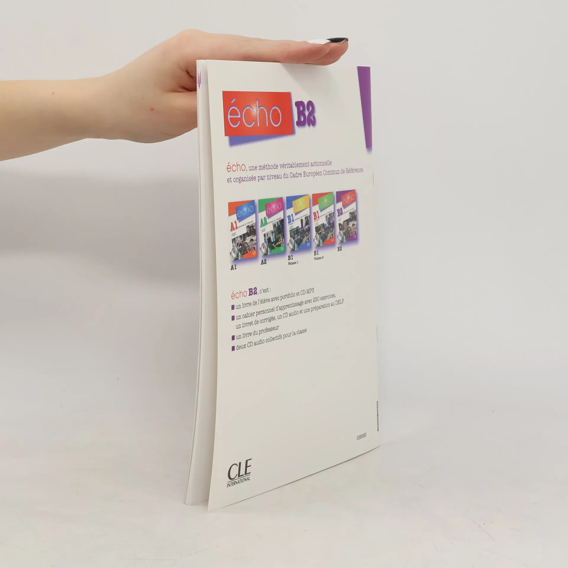 Écho, méthode actionnelle, place l'apprenant au coeur de la méthode, en le rendant constamment acteur de son apprentissage - Il interagit; Il observe et pratique la langue; Il simule des situations de communication; Il écrit et il décode des éléments de civilisation; Il réalise des projets; Il s'évalue; Il s'entraîne à l'écrit, à l'oral et au DELF avec son cahier personnel d'apprentissage.