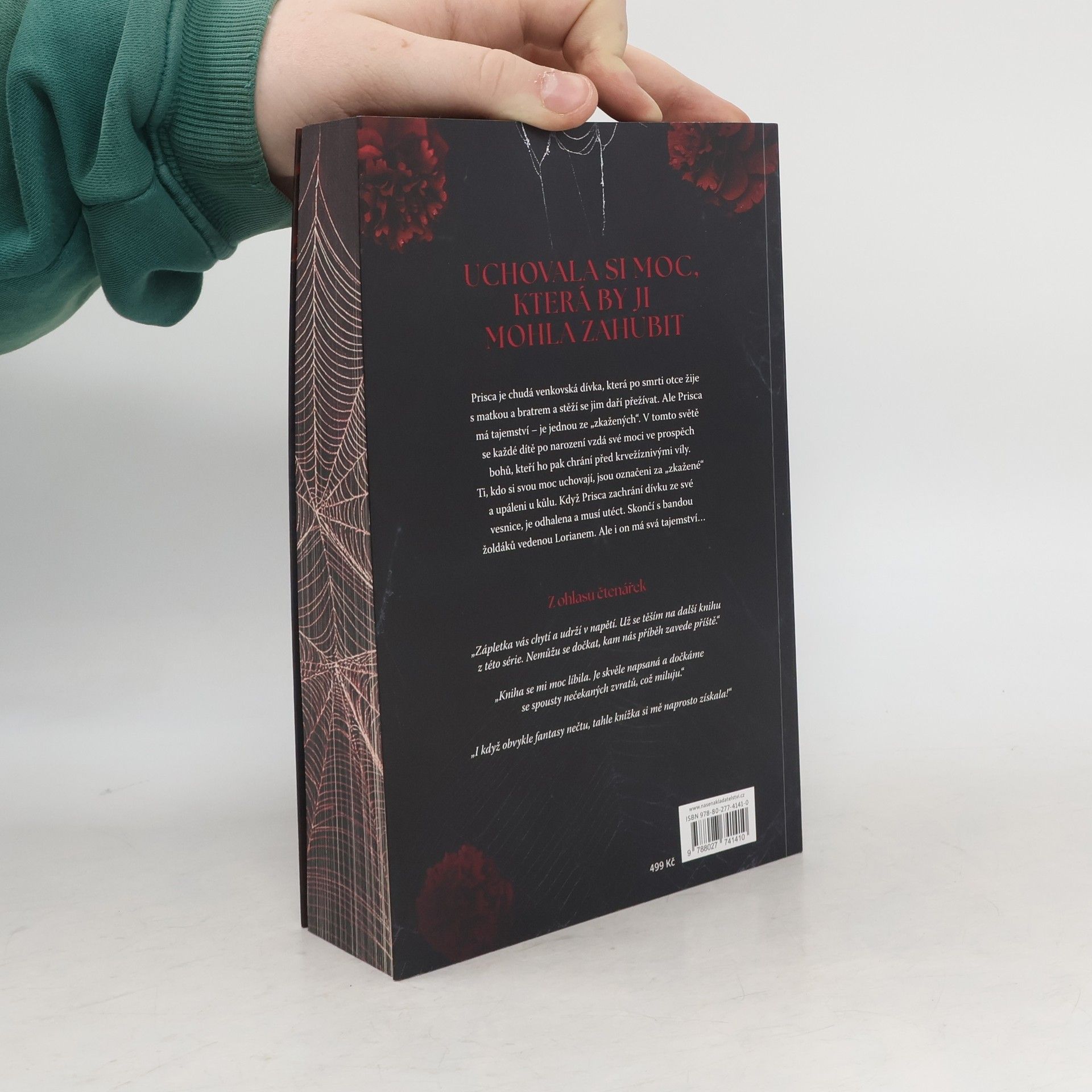 Po celá léta, když Prisca usínala, se jí zdálo o muži s podmanivýma zelenýma očima a krutým úsměvem. A skutečně se s ním setká, ovšem za jiných okolností, než by si přála. Nedlouho poté, co se lidé narodí, jim bohové seberou i tu trochu moci, s níž přišli na svět. Na oplátku je pak bohové chrání. Když se člověku podaří uchovat si svoji moc, je označený za zkaženého a je upálen. A právě to se přihodí Prisce. Její zakázaná moc je odhalena, a proto musí uprchnout ze své malé vesnice a pohodlného života. Aby přežila, musí uzavřít dohodu se žoldákem – Prisca pomůže jemu a jeho tajemným přátelům proniknout do města a oni ji naučí ovládat její vlastní tajemství a temnou moc, kterou vždy skrývala. Právě tato moc může být klíčem k Prisčině přežití. Jenže Prisca není jediná, kdo má tajemství. Žoldák skrývá svá vlastní. Tajemství, která ohrožují bezpečí všech, které Prisca miluje. Tajemství, která mohou rozvrátit nejen království, ale i celý svět.