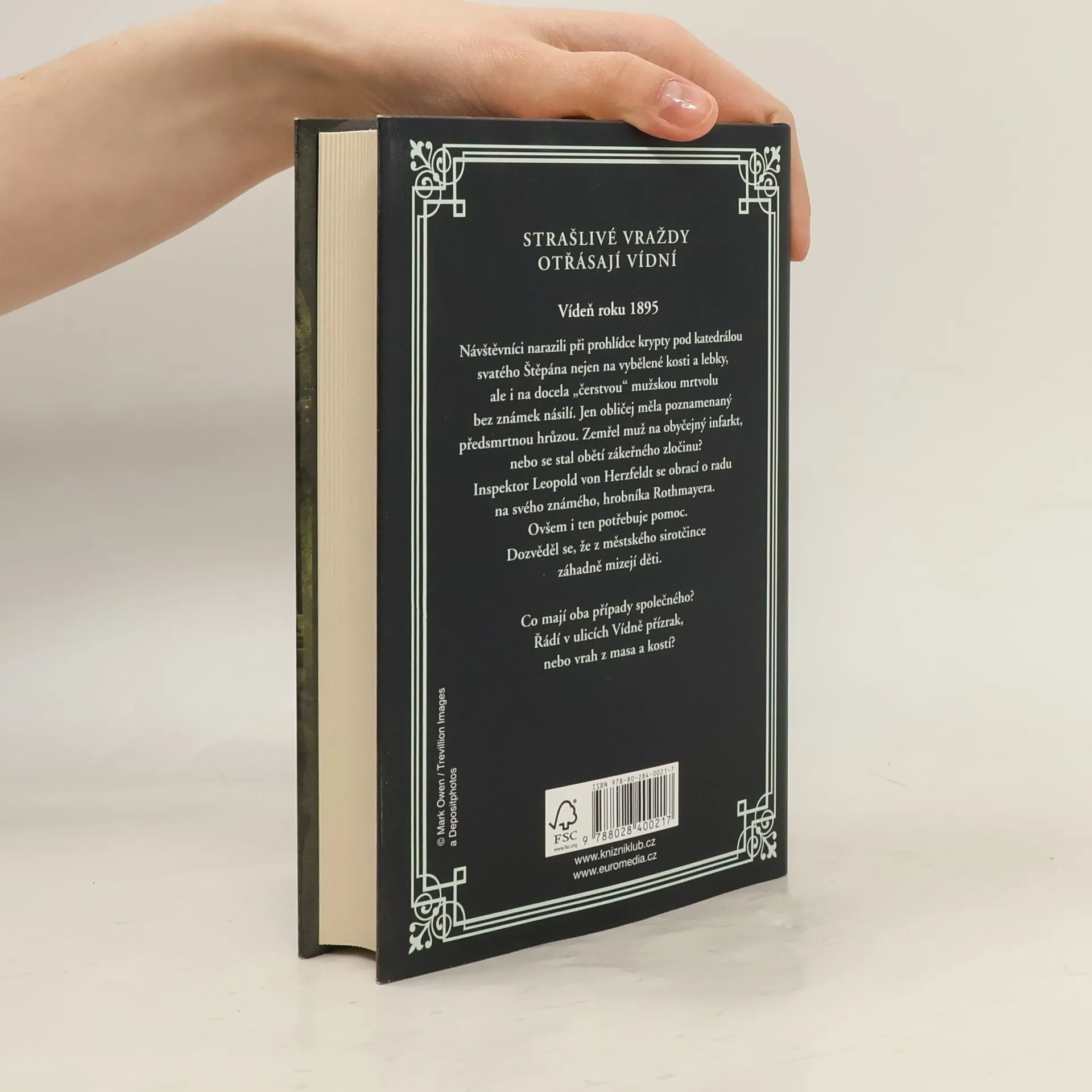 Další kriminální případ ze staré Vídně, v němž inspektor Leopold von Herzfeldt řeší případ tajemné smrti muže nalezeného v kryptě, a k tomu se navíc přidávají záhadná mizení dětí z místního sirotčince. Vídeň roku 1895: Inspektor Leopold von Herzfeldt řeší záhadnou smrt muže v kryptě pod katedrálou svatého Štěpána. Mrtvému nebyl zdánlivě zkřiven vlas na hlavě, jen obličej měl poznamenaný předsmrtnou hrůzou. Zemřel na obyčejný infarkt, nebo se stal obětí zákeřného zločinu? Inspektor se obrací o radu na svého známého hrobníka Rothmayera. Ovšem i ten potřebuje pomoc. Schovanka Anna ho upozornila na děti záhadně mizející z městského sirotčince. Nakladatelská anotace.