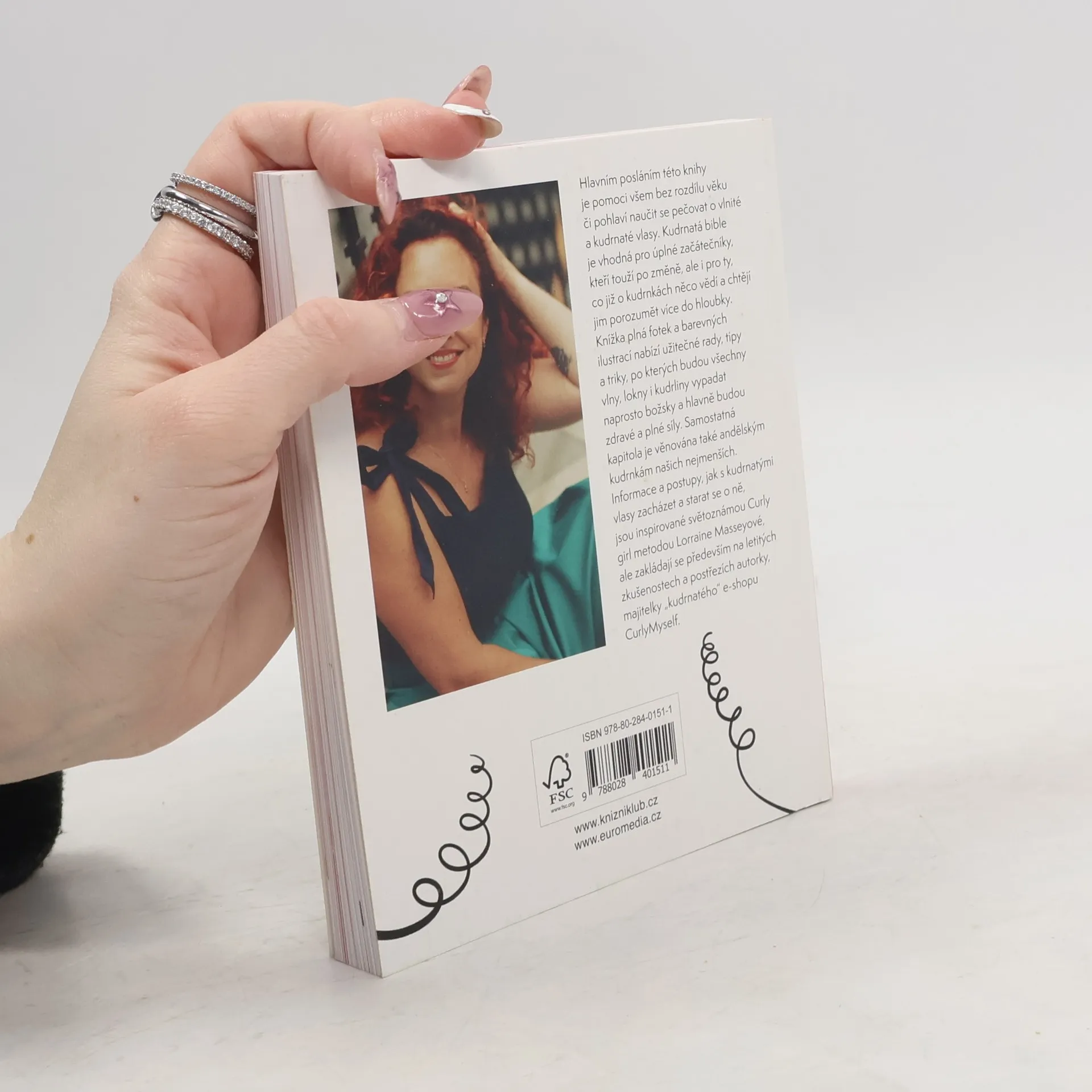 Hlavním poslánm této knihy je pomoci všem bez rozdílu věku či pohlaví naučit se pečovat o vlnité a kudrnaté vlasy. Kudrnatá bible je vhodná pro úplné začátečníky, kteří touží po změně, ale i pro ty, co již o kudrnkách něco vědí a chtějí jim porozumět více do hloubky. Knížka plná fotek a barevných ilustrací nabízí užitečné rady, tipy a triky, po kterých budou všechny vlny, lokny i kudrliny vypadat naprosto božsky a hlavně budou zdravé a plné síly. Samostatná kapitola je věnována také andělským kudrnkám našich nejmenších. Informace a postupy, jak s kudrnatými vlasy zacházet a starat se o ně, jsou inspirované světoznámou Curly girl metodou Lorraine Masseyové, ale zákládají se především na letitých zkušenostech a postřezích autorky, majitelky "kudrnatého" e-shopu CurlyMyself.
