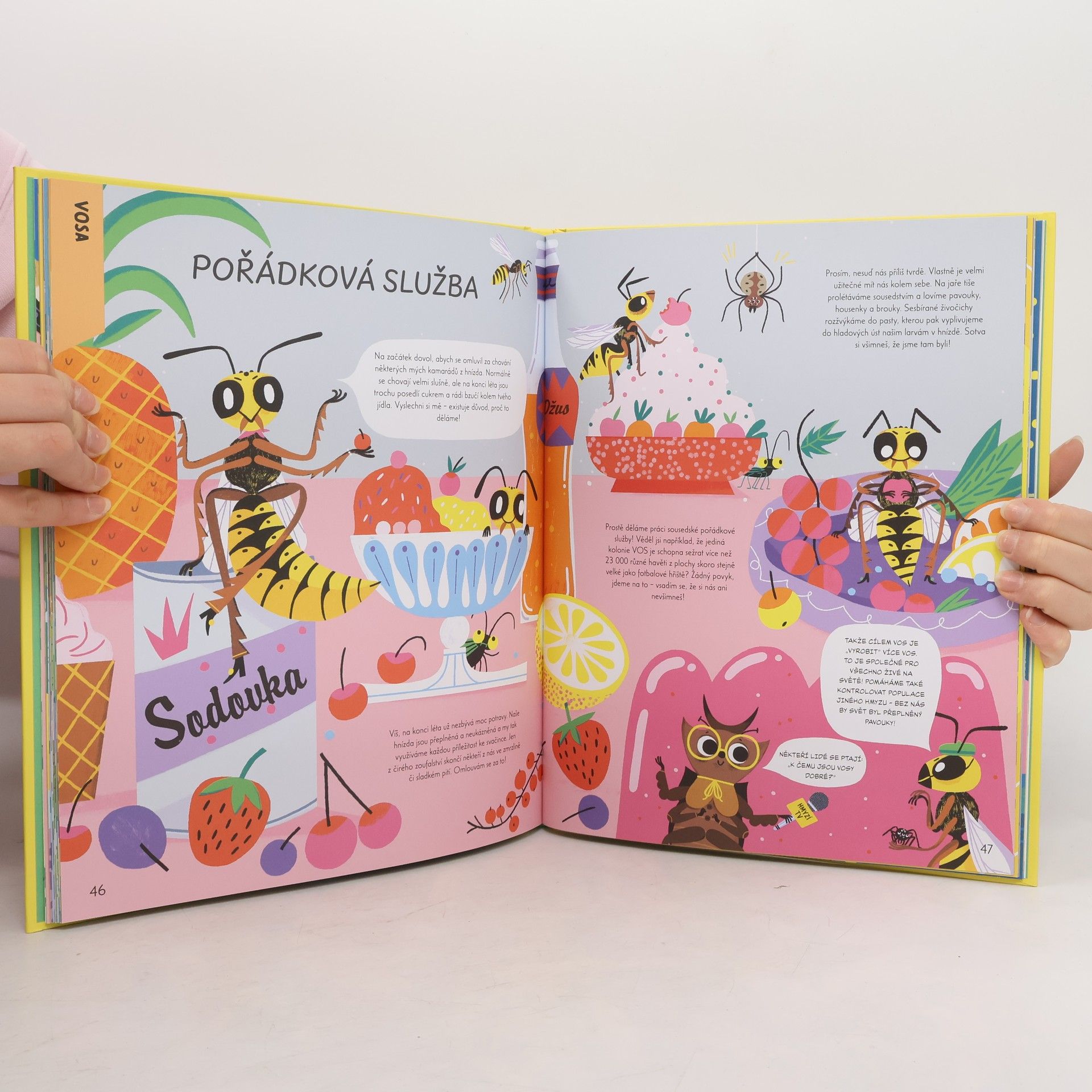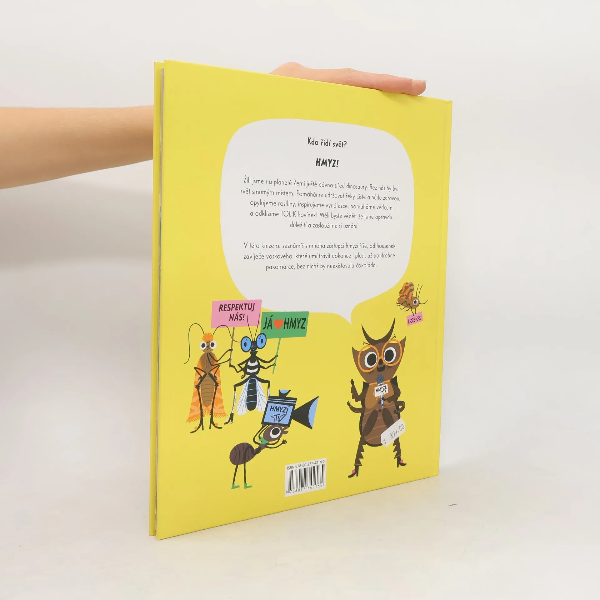 Pojď se dozvědět skutečné příběhy o hmyzu kolem sebe. Bezobratlí živočichové pro nás dělají spousty věcí! Vyrábějí med, likvidují odpadky, pomáhají vyrábět čokoládu a mnoho dalšího. V této potrhlé knížce na tebe promluví užiteční tvorové a vezmou tě na cestu do svých domovin. Už se nemohou dočkat, až ti řeknou o všem dobrém, co pro tebe dělají. Ukáží ti své speciální dovednosti a vlastnosti, vysvětlí, proč jsou tak důležití pro fungování ekosystému, a přiblíží ti, proč si zaslouží více uznání. Potkáš tu: - masožravé brouky, což může znít děsivě, ale to je jen nedorozumění. Ve skutečnosti pomáhají muzejním pracovníkům čistit staré exempláře a v přírodě zajišťují, že zem není pokrytá mrtvolami zvířat, takže nás zachraňují před děsivými procházkami lesem. - pakomáry, kteří jsou jedinými opylovači kakaových rostlin a bez nich by nebyla čokoláda! - housenky zavíječe voskového – jeden z prvních druhů, který dokáže strávit plast a přináší tak klíč k redukci těžko rozložitelného odpadu. A mnoho, mnoho dalšího! Bez hmyzu bychom tady nemohli žít, nicméně velmi rychle mizí. Tato kniha uvede mladé čtenáře k láskyplné partě hmyzu, povzbuzující nové generace malých ochránců. Podpořte znalosti svého dítěte a příjemně jej uveďte do tématu ochrany životního prostředí s touto barevnou a zábavnou knihou plnou fascinujících skutečností.