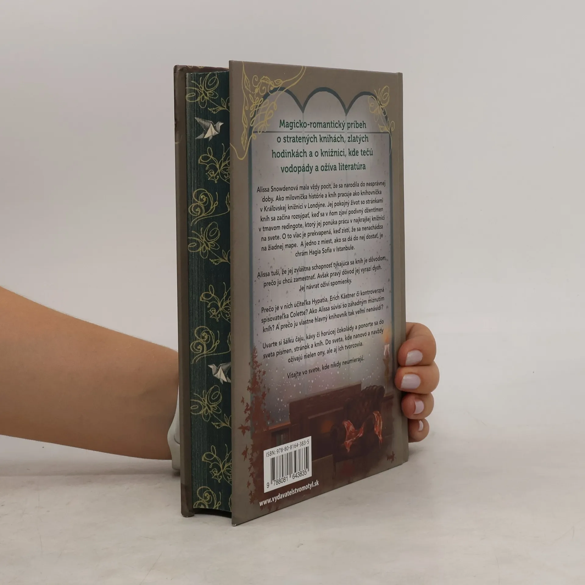Alissa Snowdenová mala vždy pocit, že sa narodila do nesprávnej doby. Ako milovníčka histórie a kníh pracuje ako knihovníčka v Kráľovskej knižnici v Londýne. Jej pokojný život so stránkami kníh sa začína rozsýpať, keď sa v ňom zjaví podivný džentlmen v tmavom redingote, ktorý jej ponúka prácu v najkrajšej knižnici na svete. O to viac je prekvapená, keď zistí, že sa nenachádza na žiadnej mape. A jedno z miest, ako sa dá do nej dostať, je chrám Hagia Sofia v Istanbule. Alissa tuší, že jej zvláštna schopnosť týkajúca sa kníh je dôvodom, prečo ju chcú zamestnať. Avšak pravý dôvod jej vyrazí dych. Jej návrat oživí spomienky. Prečo je v nich učiteľka Hypatia, Erich Kästner či kontroverzná spisovateľ ka Colette? Ako Alissa súvisí so záhadným miznutím kníh? A prečo ju vlastne hlavný knihovník tak veľmi nenávidí? Uvarte si šálku čaju, kávy či horúcej čokolády a ponorte sa do sveta písmen, stránok a kníh. Do sveta, kde nanovo a navždy ožívajú nielen ony, ale aj ich tvorcovia. Vitajte vo svete, kde nikdy neumierajú.