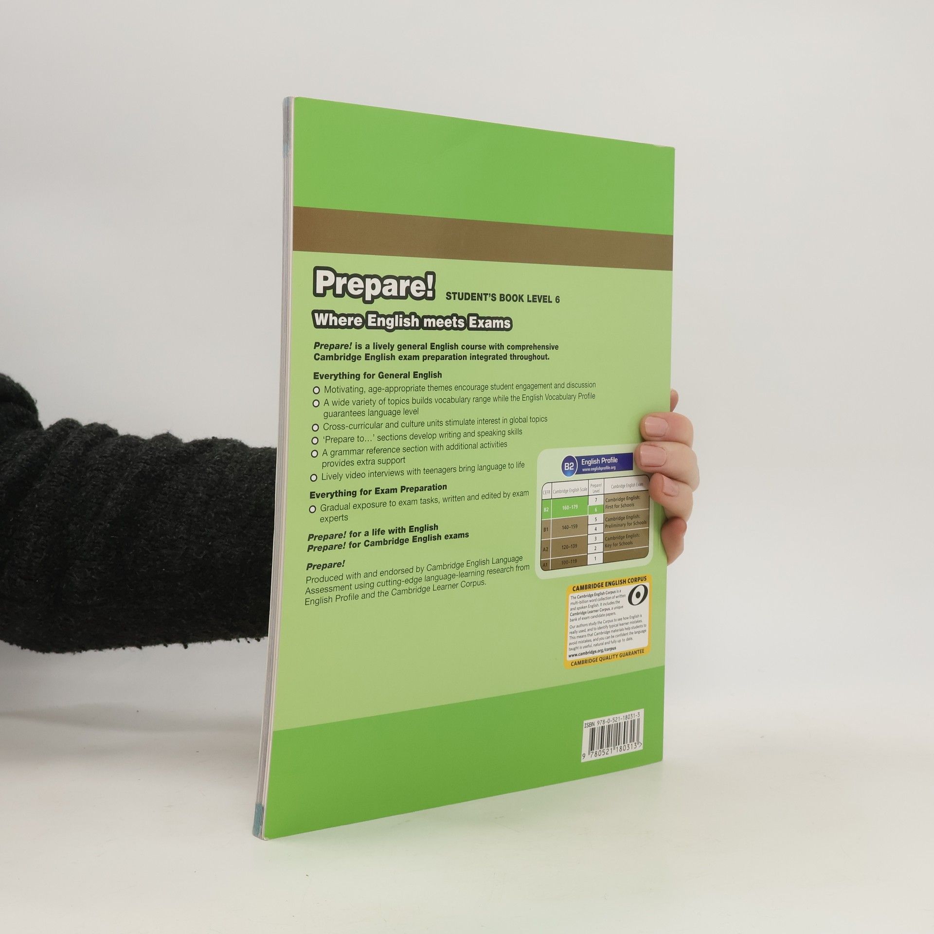 Prepare! is a lively 7-level general English course with comprehensive Cambridge English for Schools exam preparation integrated throughout. This flexible course brings together all the tools and technology you expect to get the results you need. Whether teaching general English or focusing on exams, Prepare! leaves you and your students genuinely ready for what comes next: real Cambridge English exams, or real life. The Level 6 Student's Book engages students and builds vocabulary range with motivating, age-appropriate topics. Its unique approach is driven by cutting-edge language research from English Profile and the Cambridge Learner Corpus. 'Prepare to...' sections develop writing and speaking skills. A Student's Book and Online Workbook is also available, separately.