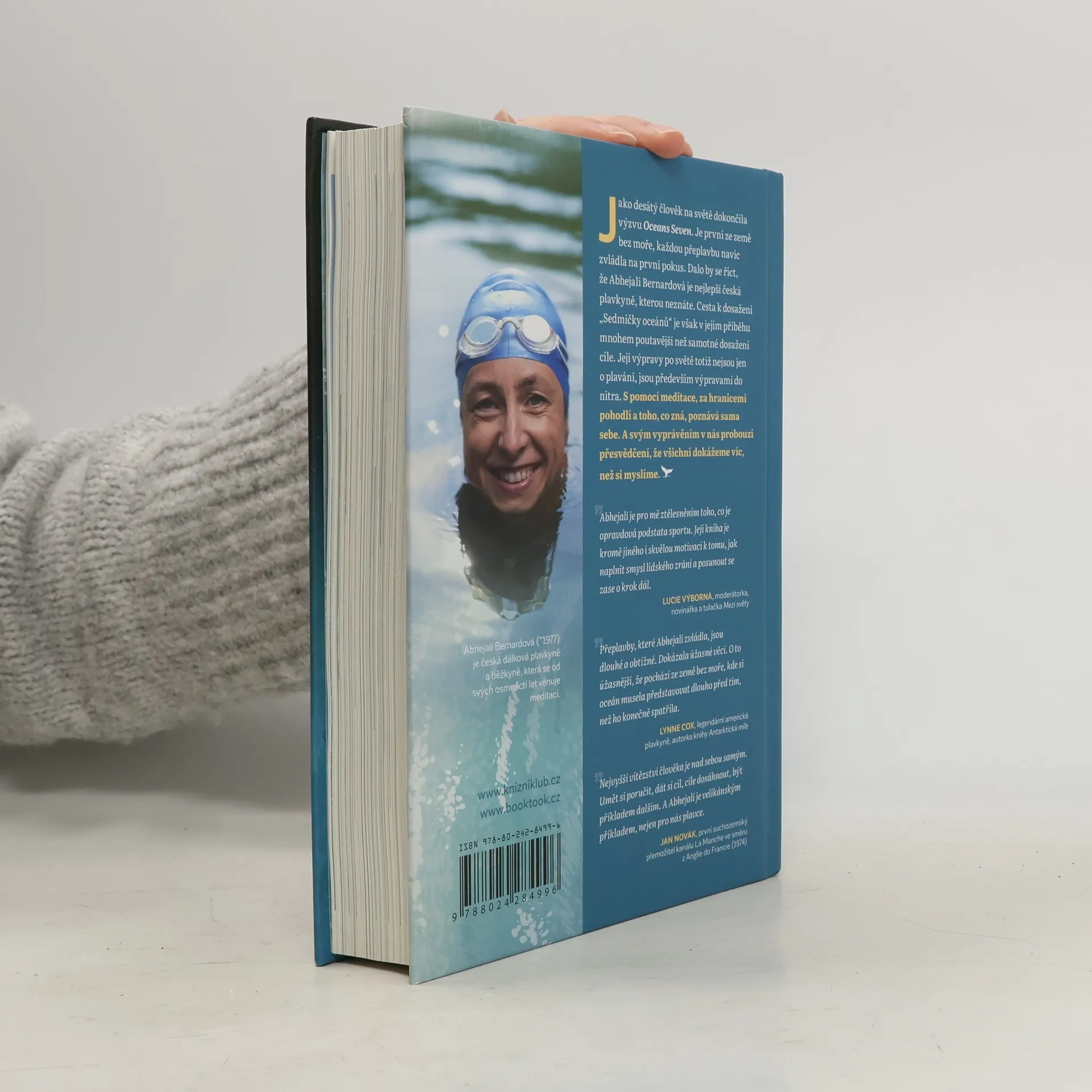 Jako desátý člověk na světě dokončila výzvu „Oceans Seven“. Dalo by se říct, že Abhejali Bernardová je nejlepší česká plavkyně, kterou neznáte. Cesta k dosažení „Sedmičky oceánů“ je však v jejím příběhu mnohem poutavější než samotné dosažení cíle. Její výpravy po světě totiž nejsou jen o plavání, jsou především výpravami do nitra. S pomocí meditace, za hranicemi pohodlí a toho, co zná, poznává sama sebe. A svým vyprávěním v nás probouzí přesvědčení, že všichni dokážeme víc, než si myslíme.