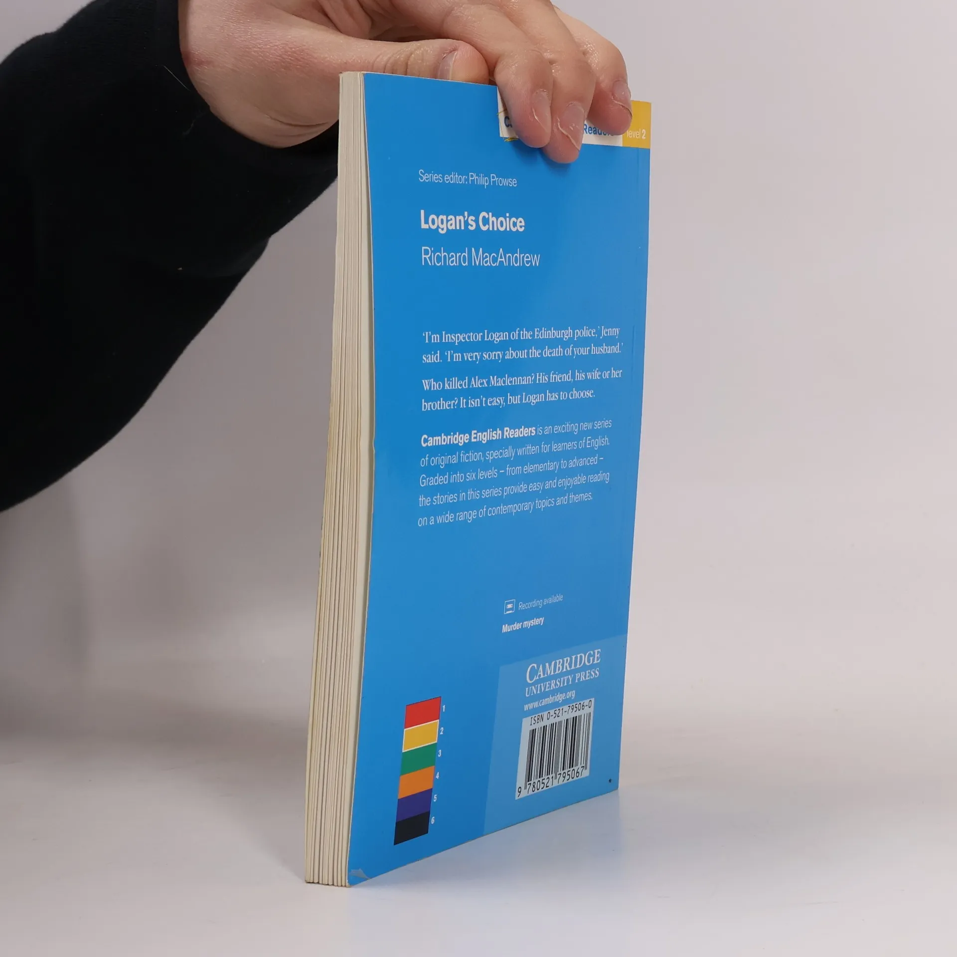 Cambridge English Readers is an award-winning series of original fiction readers for learners of English, offering exciting reading from Starter to Advanced levels. When Edinburgh restaurant owner Alex Maclennan is found dead in his bathroom, Inspector Jenny Logan is called in to investigate. At first his death looks like an accident but Logan begins to think it could be murder. Does his wife, his brother-in-law or his friend know more about his death than they will admit? Logan uncovers the truth about Alex's business affairs and personal life, and devises a plan to catch the killer. Paperback-only version.