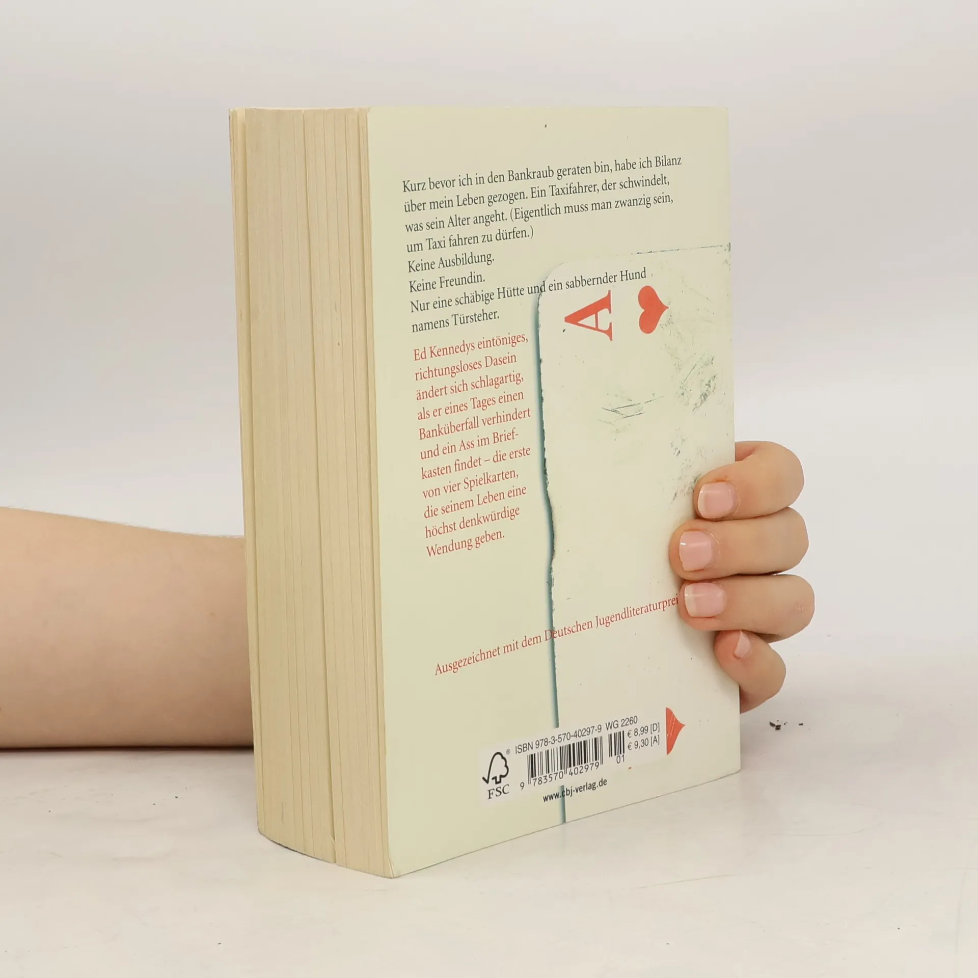 Deutscher Jugendliteraturpreis 2007 In Eds Briefkasten liegt – eine Spielkarte. Ein Karo-Ass. Darauf stehen drei Adressen. Die Neugier treibt ihn hin zu diesen Orten, doch was er dort sieht, bestürzt ihn zutiefst: drei unerträglich schwere Schicksale, Menschen, die sich nicht selbst aus ihrem Elend befreien können. Etwas in Ed schreit: »Du musst handeln! Tu endlich was!« Dreimal fasst er sich ein Herz, dreimal verändert er Leben. Da flattert ihm die nächste Karte ins Haus. Wieder und wieder ergreift Ed die Initiative – doch wer ihn auf diese eigenartige Mission geschickt hat, ist ihm völlig schleierhaft.Eine Geschichte über Zivilcourage, ungeheuer spannend und mit viel Situationskomik erzählt.