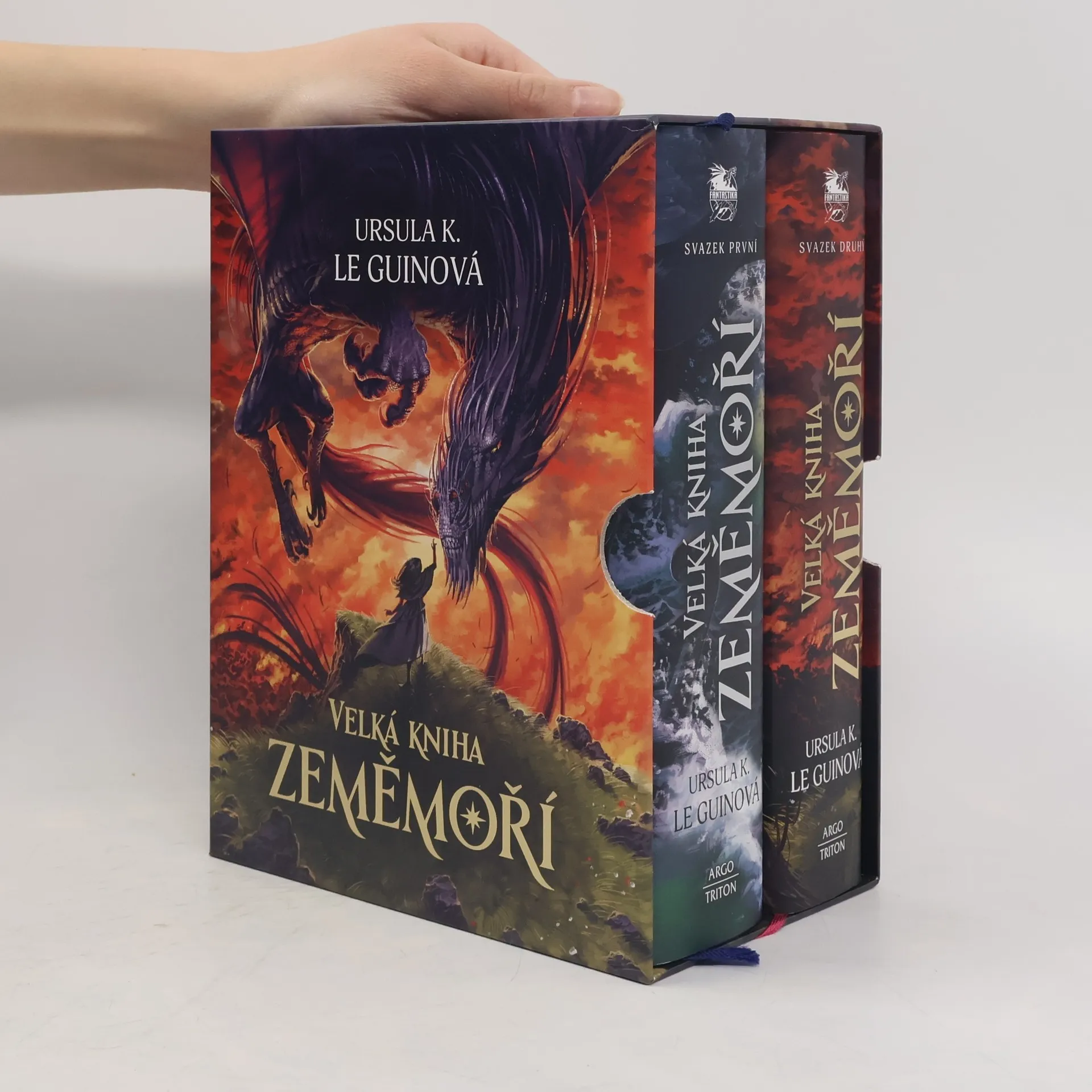 Kompletní vydání ve dvou svazcích a speciálním boxu. U příležitosti padesáti let, které uplynuly od vydání nestárnoucího, stále milovaného Čaroděje Zeměmoří, přichází souhrnné vydání všech příběhů slavného Zeměmořského cyklu, obohacené o více než dvacet překrásných ilustrací Mikuláše Podprockého, jež doplňují klasické dílo úžasné představivosti velmistryně žánru Ursuly Kroeber Le Guinové. Zeměmořské romány patří mezi nejoceňovanější a nejoblíbenější díla moderní literatury. Dostalo se jim prestižních ocenění včetně americké Národní knižní ceny, Newberyho medaile, Nebuly a mnoha dalších, což jen upevnilo zvláštní místo, jež zaujímají v srdcích i myslích nespočtu čtenářů. Vůbec poprvé vycházejí všechny ve dvou mohutných svazcích, v nichž mimo jiné najdete několik povídek, z nichž některé vycházejí v českém překladu vůbec poprvé.