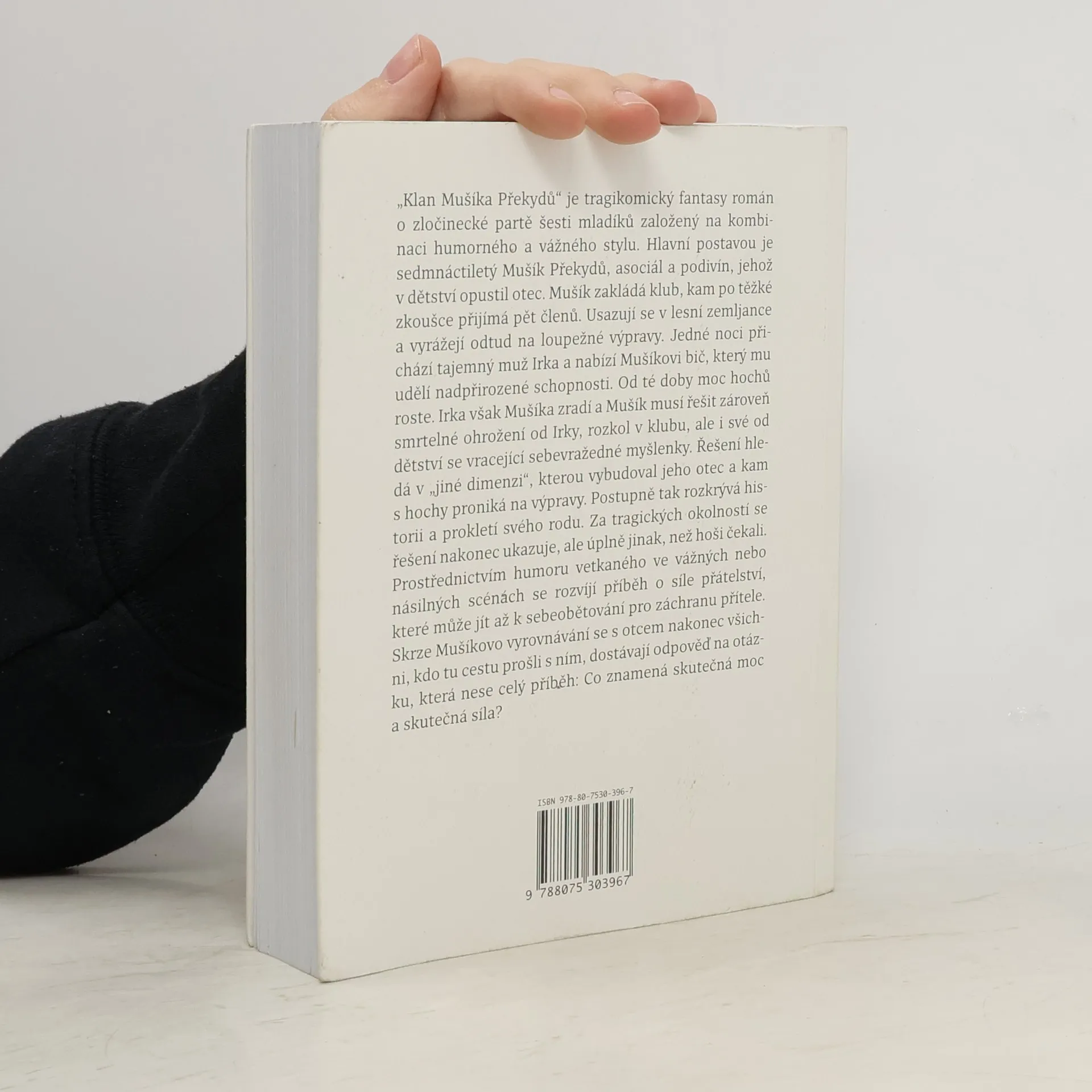 Tragikomický fantasy román o zločinecké partě šesti mladíků založený na kombinaci humorného a vážného stylu. Hlavní postavou je sedmnáctiletý Mušík Překydů, asociál a podivín, jehož v dětství opustil otec. Mušík zakládá klub, kam po těžké zkoušce přijímá pět členů. Usazují se v lesní zemljance a vyrážejí odtud na loupežné výpravy. Jedné noci přichází tajemný muž Irka a nabízí Mušíkovi bič, který mu udělí nadpřirozené schopnosti. Od té doby moc hochů roste. Irka však Mušíka zradí a Mušík musí řešit zároveň smrtelné ohrožení od Irky, rozkol v klubu, ale i své od dětství se vracející sebevražedné myšlenky. Řešení hledá v „jiné dimenzi“, kterou vybudoval jeho otec a kam s hochy proniká na výpravy. Postupně tak rozkrývá historii a prokletí svého rodu. Za tragických okolností se řešení nakonec ukazuje, ale úplně jinak, než hoši čekali. Prostřednictvím humoru vetkaného ve vážných nebo násilných scénách se rozvíjí příběh o síle přátelství, které může jít až k sebeobětování pro záchranu přítele. Skrze Mušíkovo vyrovnávání se s otcem nakonec všichni, kdo tu cestu prošli s ním, také dostávají odpověď na otázku, která nese celý příběh: Co znamená skutečná moc a skutečná síla?