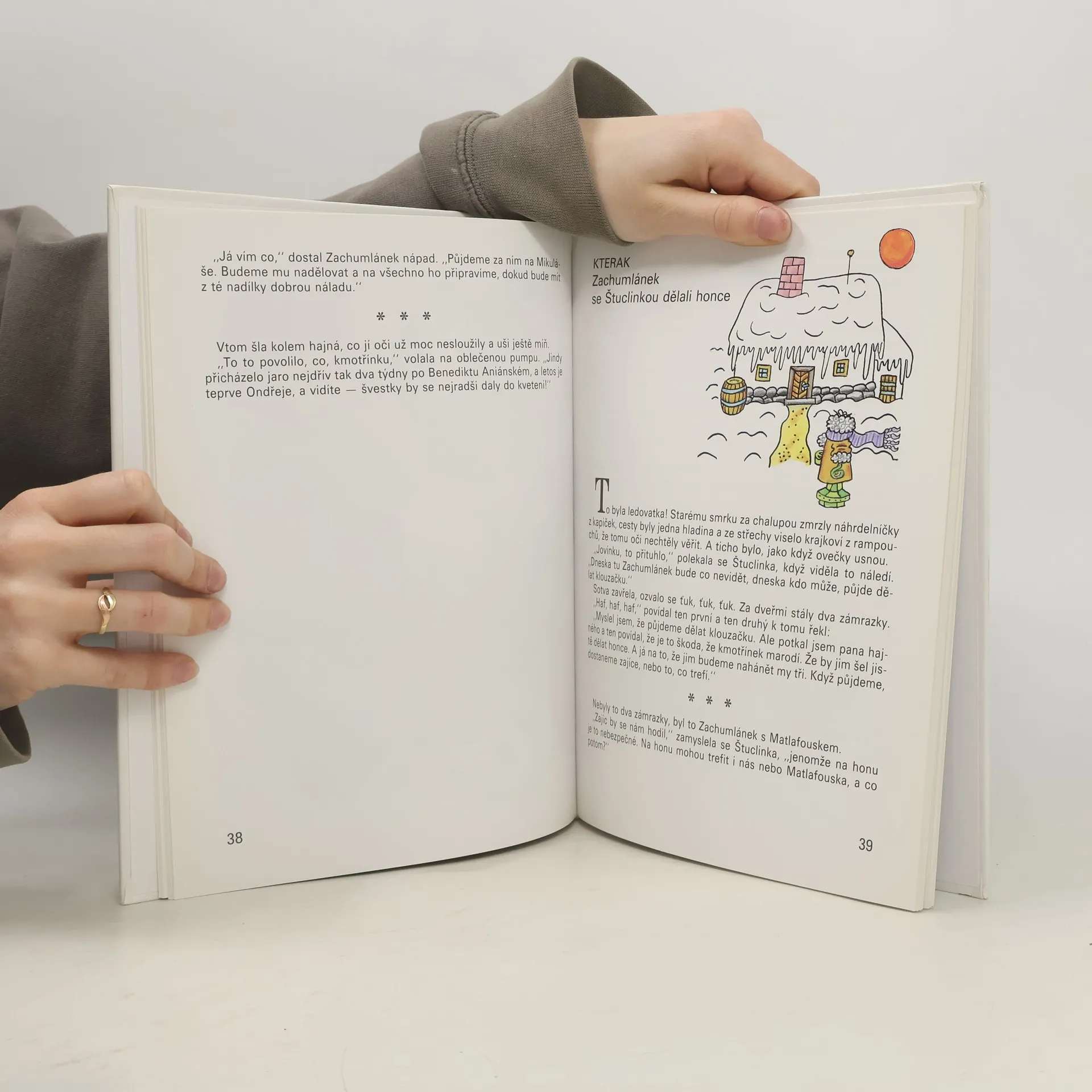 Štuclinka se musí za pomoci svého přítele Zachumlánka postarat v zimě o sebe i o chaloupku. Knížka pro nejmenší, plná poetiky, moudrosti a svérázného humoru.