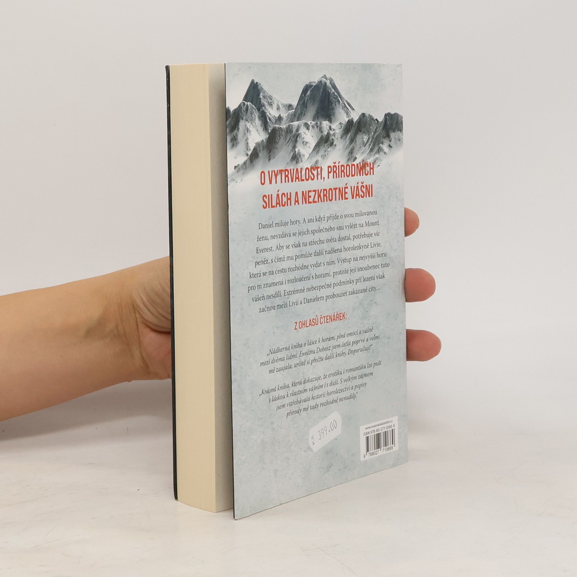 Extrémní podmínky, vášeň silnější než strach a touha jako kyslík. Livii a Daniela spojuje společný cíl – dobýt nejvyšší vrchol Země. Výstup na střechu světa pro ně má být očistou, rozloučením s minulostí a šancí na nový život. Ale vášeň, která se mezi nimi v těchto krajně nepříznivých klimatických podmínkách zrodí, je jako lavina – nemůžou a ani nechtějí jí uniknout, i když tím riskují celý svůj dosavadní svět. Ani na chvíli však nezapomenou, že samotný vrchol je teprve v půli cesty. Román Eweliny Dobosz je plný nezkrotné touhy, která rozpustí i himalájský ledovec.